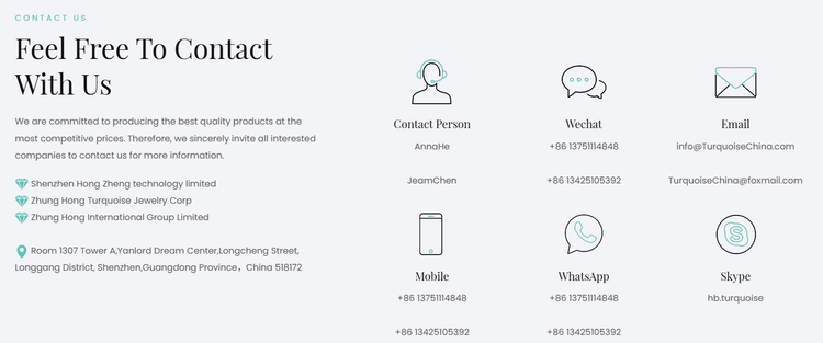 Phone number:86 13425105392 Email: info@TurquoiseChina.com