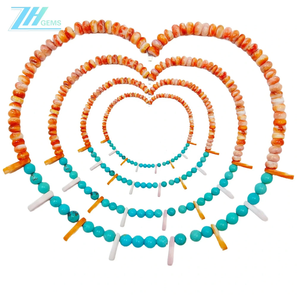 This 16-inch necklace strand weighs 26.5g and combines natural turquoise with vibrant orange spiny oyster shell, creating a dynamic interplay of warm and cool tones. Expertly suited for jewelry designers and beadwork enthusiasts, these carefully selected gemstones offer authentic material quality for custom creations. The balanced composition of blue and orange hues provides versatile design possibilities, whether you're crafting statement pieces or delicate layered designs. Each bead reflects natural variations, ensuring your finished work possesses genuine character and depth. An essential component for artisans seeking premium materials to elevate their DIY jewelry projects.