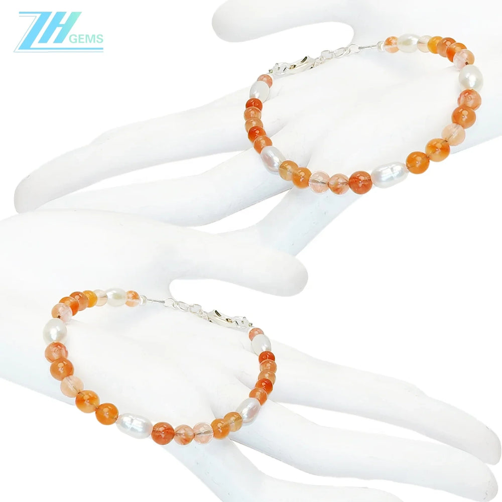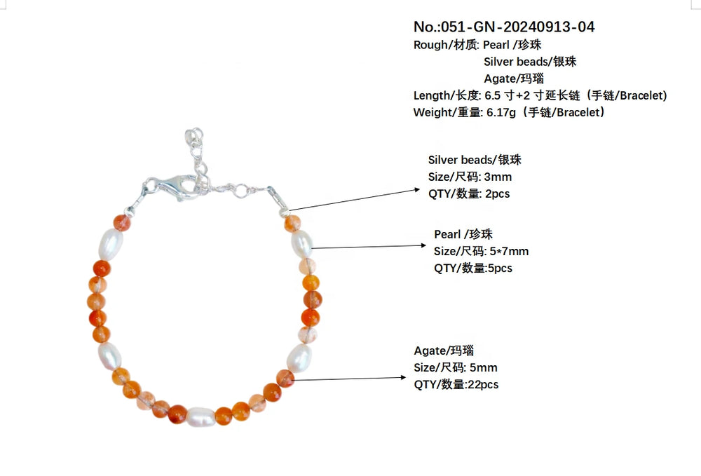 925 Silver Beads Natural Pearl Agate Bracelet Handmade Summer Fashion Jewelry Hot Selling