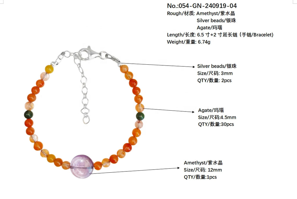 Amethyst Colored Agate Bracelet Fashion Modern Simple Style Fashion Jewelry Women's Jewelry