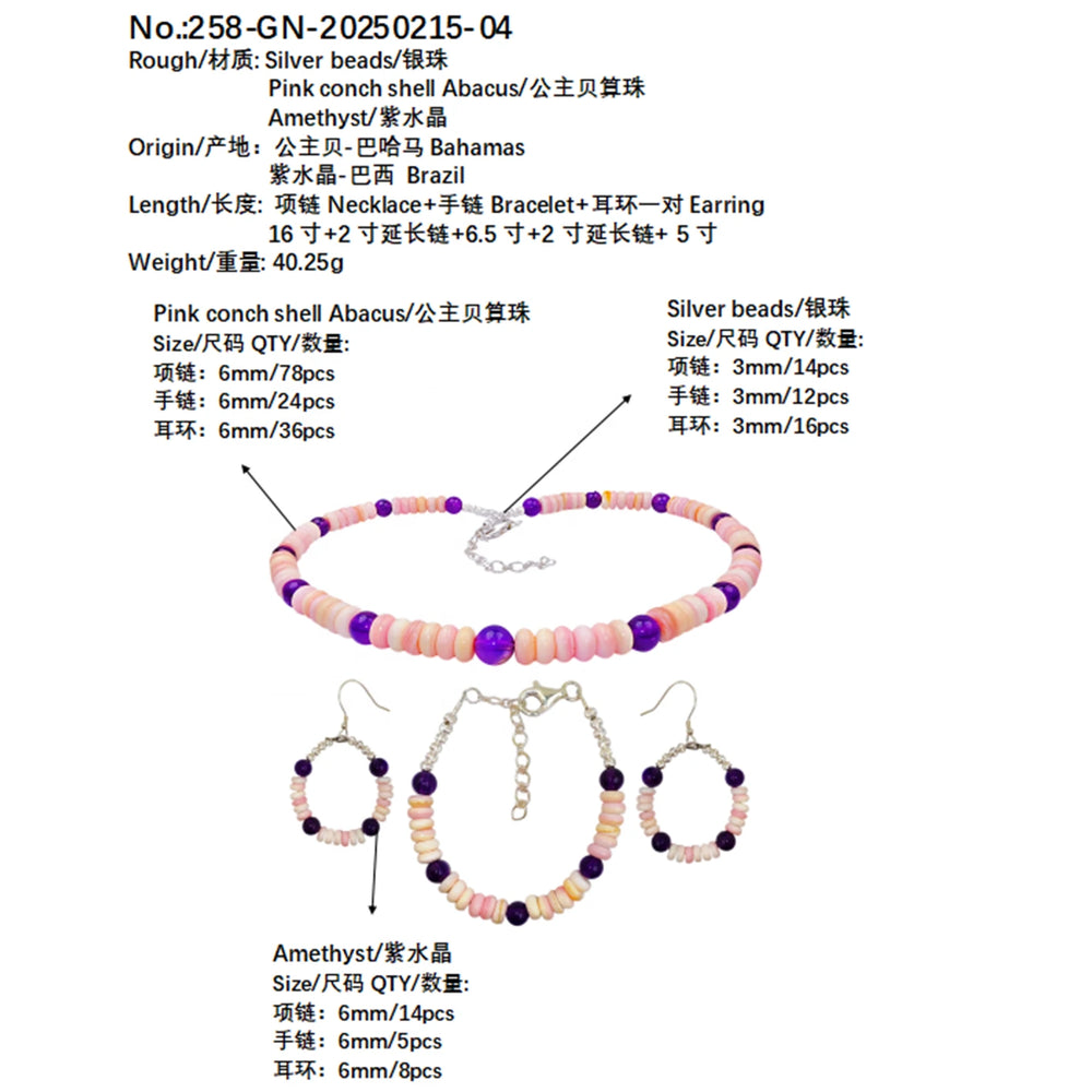 Elevate your elegance with this expertly crafted 3-piece jewelry set featuring genuine amethyst and natural pink opal stones. The harmonious blend of violet and soft pink hues offers a sophisticated yet delicate look. This set includes a necklace, bracelet, and earrings, each designed to highlight the unique beauty of these natural gemstones. Ideal for adding a refined touch to any outfit, it balances versatility with timeless charm. Perfect for those who appreciate the subtle power and harmony of authentic stones combined in one exquisite collection.