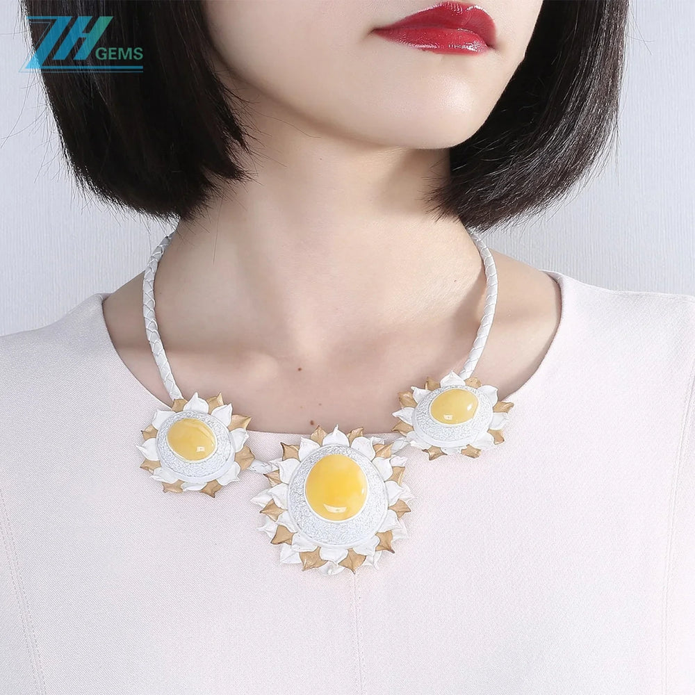 Baltic Amber Color Yellow Exquisite Beaded Meditation Simple Atmosphere 23.4g Christmas Gift Necklace