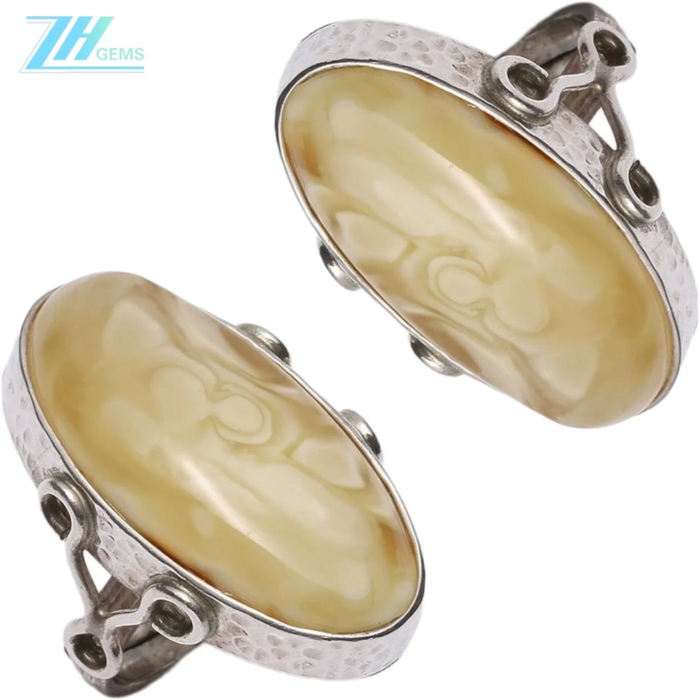 This exquisite ring features a genuine Baltic white amber gemstone, expertly handcrafted and set in 925 sterling silver. Its polished amber centerpiece showcases natural beauty and unique inclusions, making every piece one of a kind. The sterling silver band is stamped for authenticity, ensuring lasting quality and elegance. Perfect as a thoughtful gift, this ring combines timeless craftsmanship with the warm glow of amber, offering a sophisticated accessory for her collection.