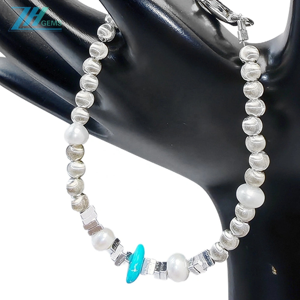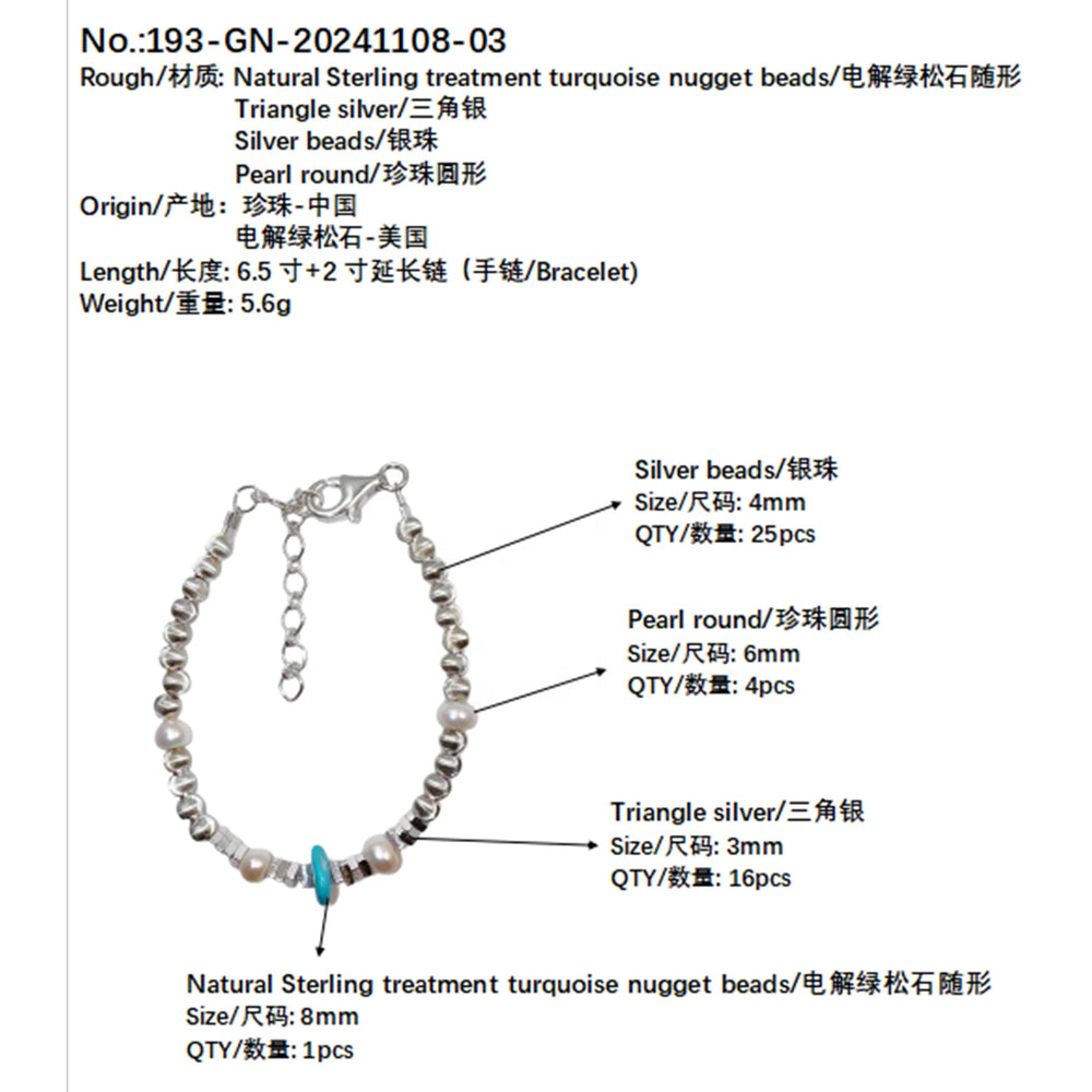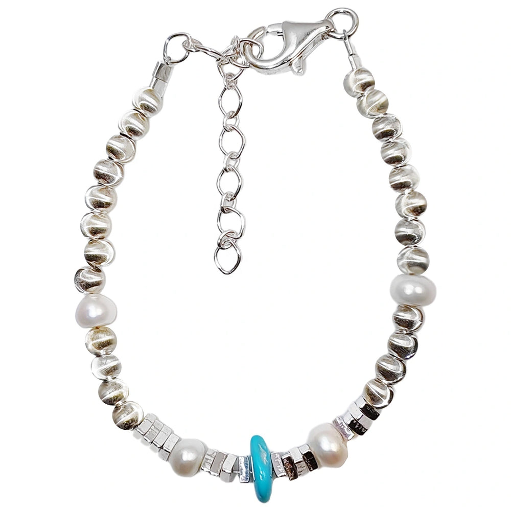 Celebrate your milestone with this exquisite anniversary bracelet, featuring authentic natural turquoise pearls paired with sterling silver (.925) craftsmanship. Each piece showcases the distinctive beauty of genuine turquoise, known for its calming energy and timeless appeal. The high-quality silver setting ensures durability and lasting brilliance, while the exclusive design allows for personalization to match your unique style. Perfect for commemorating special moments, this bracelet combines luxury materials with thoughtful artistry, making it a treasured keepsake for years to come.