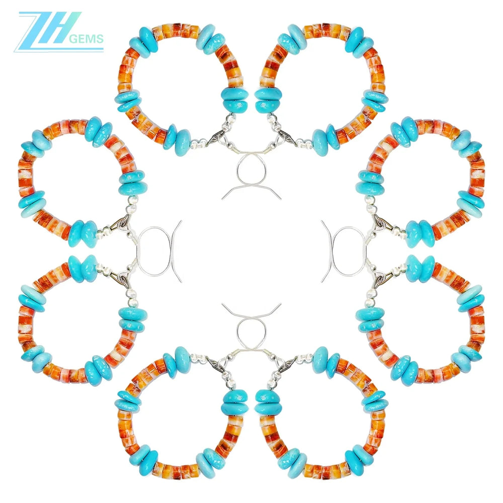 Crafted from authentic natural turquoise and vibrant orange spiny oyster shell, this exquisite set combines timeless elegance with distinctive character. Each piece showcases the stone's natural variations and the oyster's warm, luminous hues—hallmarks of genuine high-quality materials. Versatile enough for daily wear yet refined enough for special occasions, this set makes a thoughtful engagement gift or a striking addition to any jewelry collection. The harmonious pairing of turquoise's calming blue-green tones with spiny oyster's rich orange creates a sophisticated aesthetic that transcends trends.
