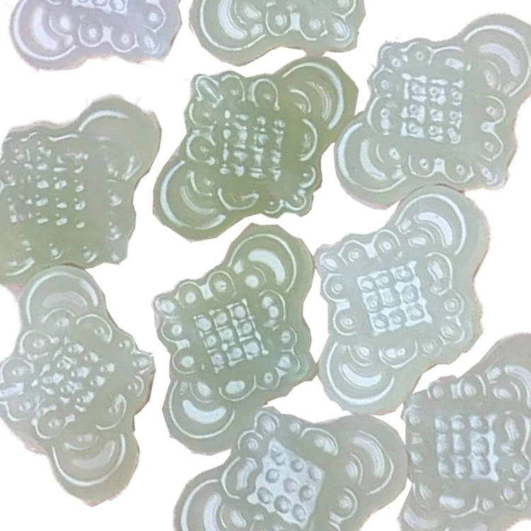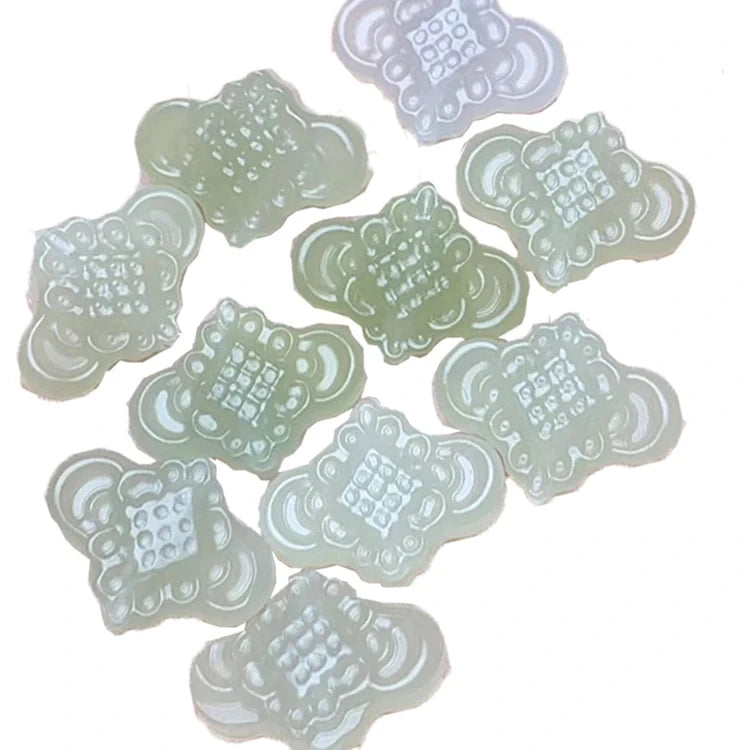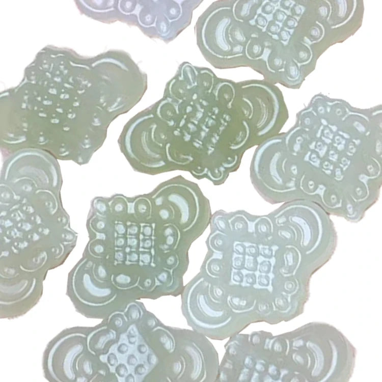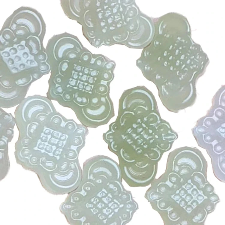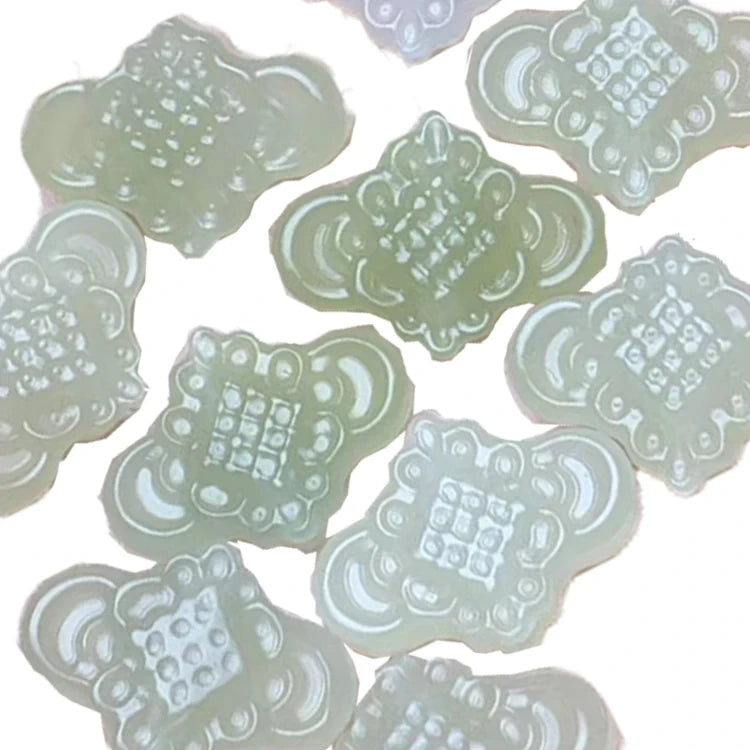 The "Chinese Knot Pendant Link White Green Carved Natural Nephrite Stone" is a stunning pendant made from natural nephrite stone, featuring a beautiful white and green color combination. Its intricate and carefully carved Chinese knot design represents luck and prosperity. This pendant serves as not only a stylish accessory but also a meaningful symbol for good fortune, making it a perfect gift option.