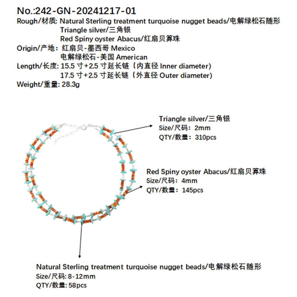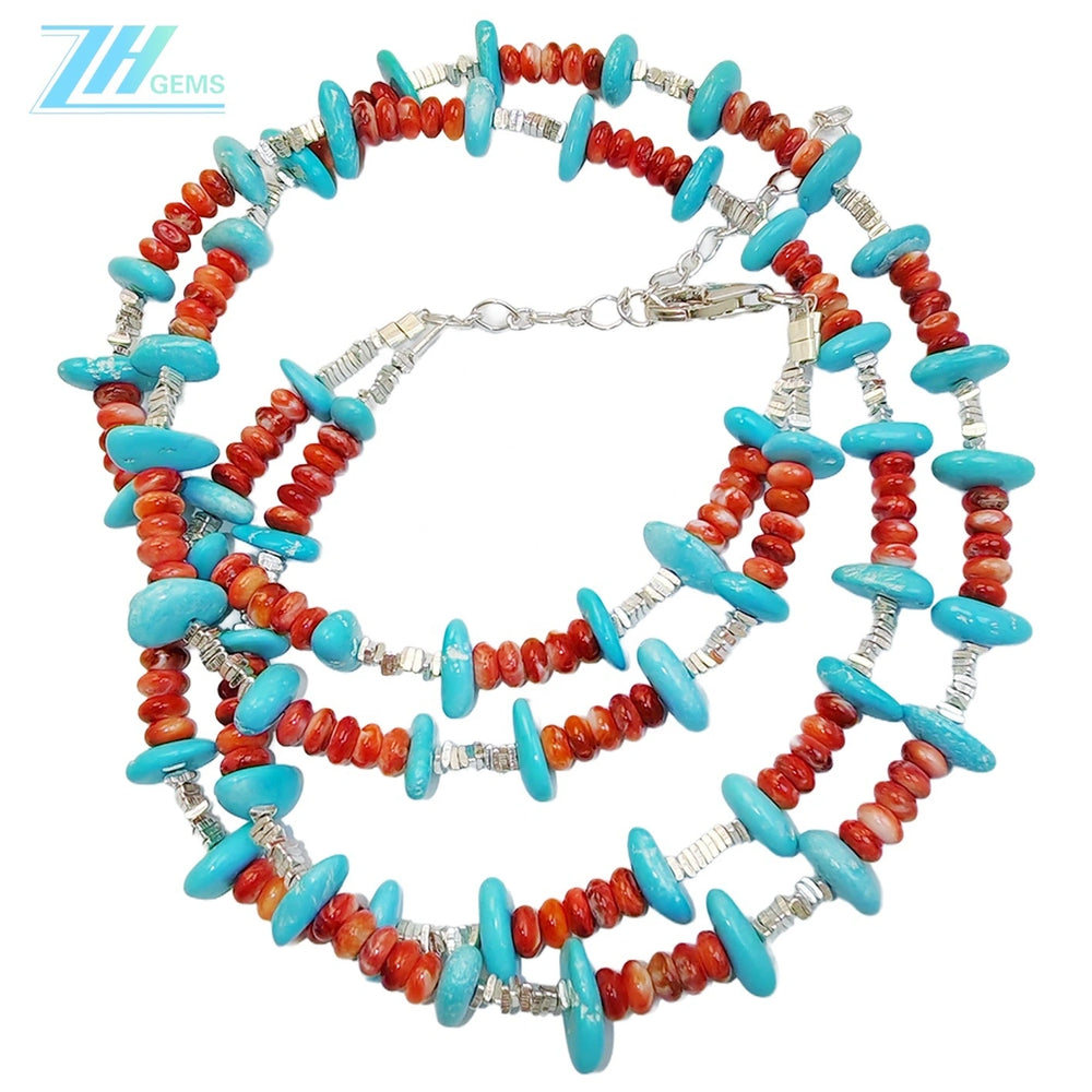 Elevate your collection with this sophisticated double natural red spiny oyster turquoise necklace, crafted for the discerning jewelry enthusiast. Each piece features authentic turquoise stones paired with delicate sterling silver (S925) accents, creating a harmonious blend of natural beauty and refined craftsmanship. The warm red hues of spiny oyster turquoise offer distinctive character, while the premium materials ensure lasting durability and timeless appeal. Perfect for those who appreciate genuine gemstones and expert artisanal work, this necklace transitions seamlessly from everyday elegance to special occasions.