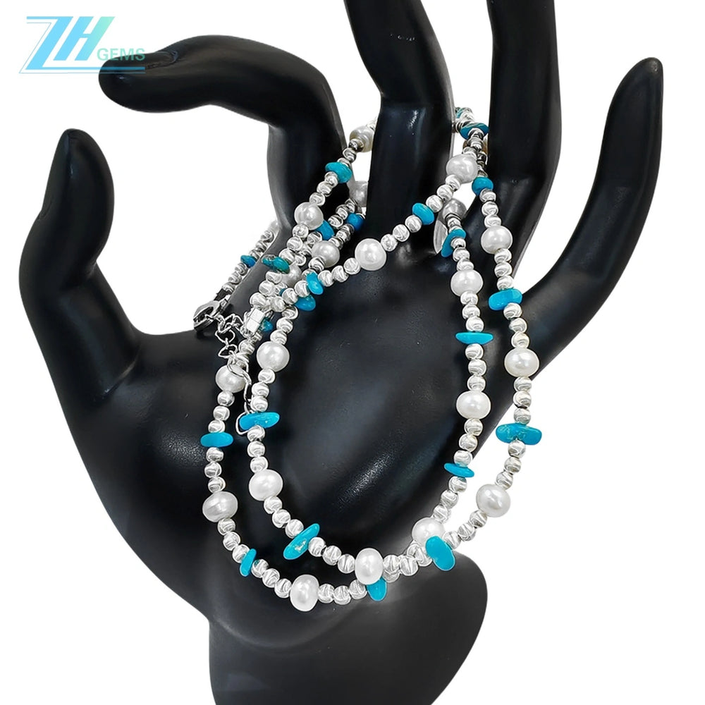 Elevate your jewelry collection with this exquisite double natural turquoise necklace, where authentic gemstones meet refined craftsmanship. Each piece features genuine turquoise stones suspended from delicate sterling silver settings, creating an understated yet striking aesthetic. The dual turquoise design offers versatility—wear it layered for contemporary appeal or as a standalone statement piece. Natural variations in stone coloring ensure every necklace is uniquely yours. Perfect for those who appreciate quality materials and timeless elegance, this necklace transitions seamlessly from everyday wear to special occasions.