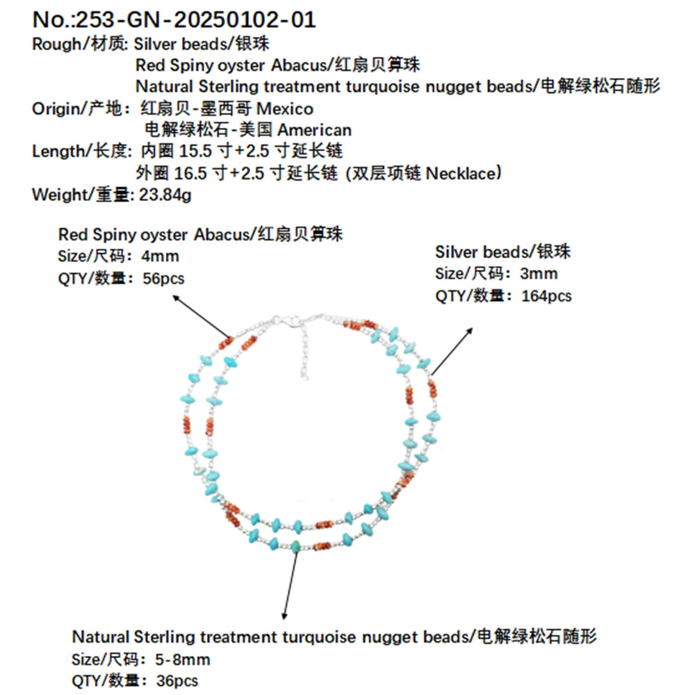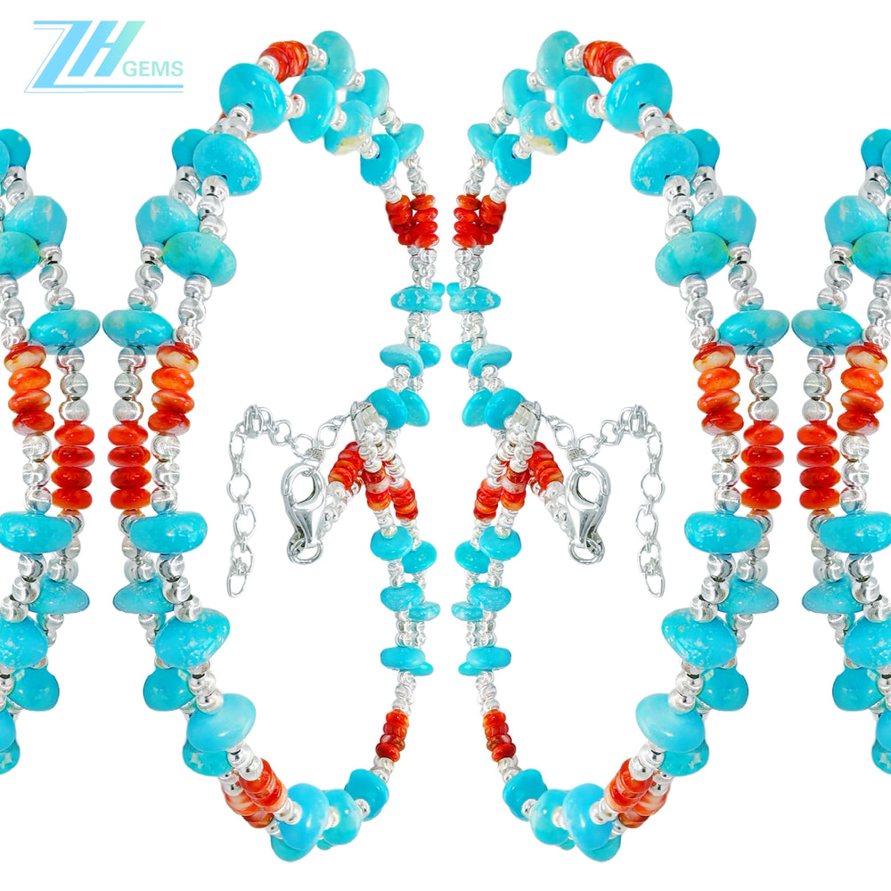 Fine Natural Red Spiny Oyster Turquoise Double Necklace This exquisite double necklace showcases authentic red spiny oyster turquoise, a rare and highly prized variety known for its distinctive crimson hues and natural matrix patterns. Each piece is carefully selected for superior quality and vibrant coloration. The dual-strand design offers versatile styling options—wear both strands together for dramatic impact or separate them for layered elegance. Crafted from genuine natural gemstone, this necklace combines traditional artistry with contemporary appeal. Perfect for collectors and jewelry enthusiasts who appreciate the unique character and geological significance of premium turquoise. An investment piece that transcends seasonal trends.