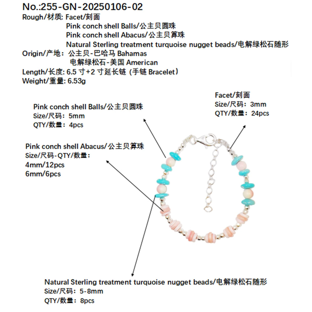 Elevate your everyday elegance with this goddess bracelet, thoughtfully designed to harmonize fresh, complementary hues. Featuring genuine turquoise paired with natural pink opal and delicate pink shell accents, this piece embodies understated sophistication with a contemporary edge. The minimalist aesthetic makes it versatile enough for casual wear while maintaining the refined quality befitting special occasions. Each stone brings its own natural character, ensuring no two bracelets are identical. Perfect as a meaningful gift for someone who appreciates authentic materials and timeless design.