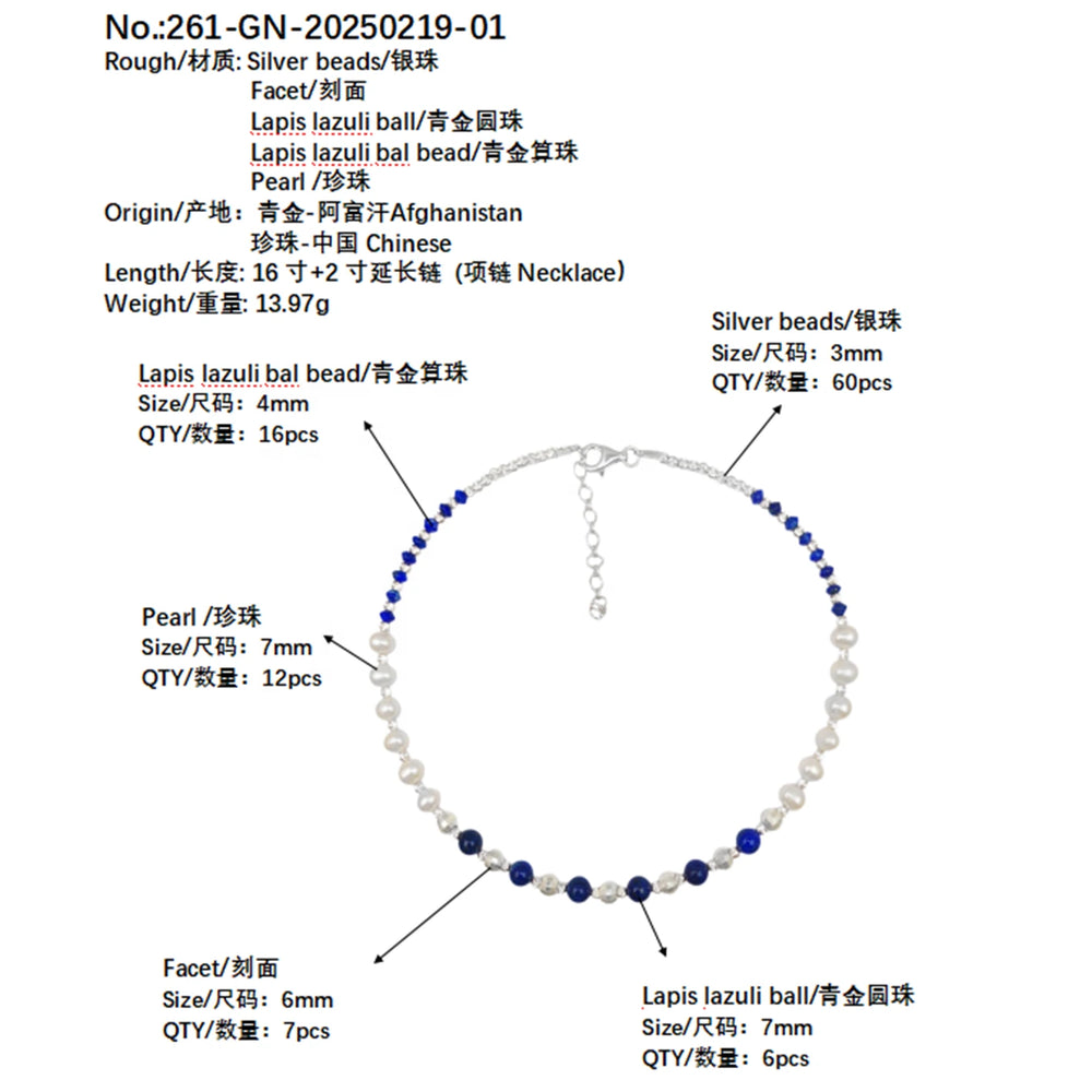 Lapis Lazuli natural high quality bead necklace natural high-grade pearl blue and white color matching classic match spring wear gifts