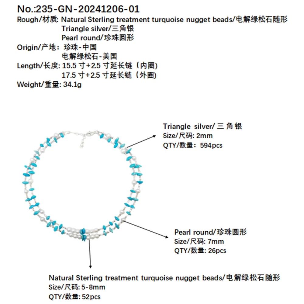 Embrace the harmonious blend of nature and craftsmanship with this exquisite double necklace, featuring authentic turquoise and lustrous pearls set in sterling silver. Each piece showcases the natural beauty of gemstones renowned for their calming properties, making it both a stunning accessory and a meaningful companion. The expertly designed layered silhouette creates dimensional elegance, while the premium S925 silver ensures lasting durability and timeless appeal. Perfect for those seeking jewelry that transcends trends—a versatile treasure that complements any wardrobe while honoring traditional healing wisdom.