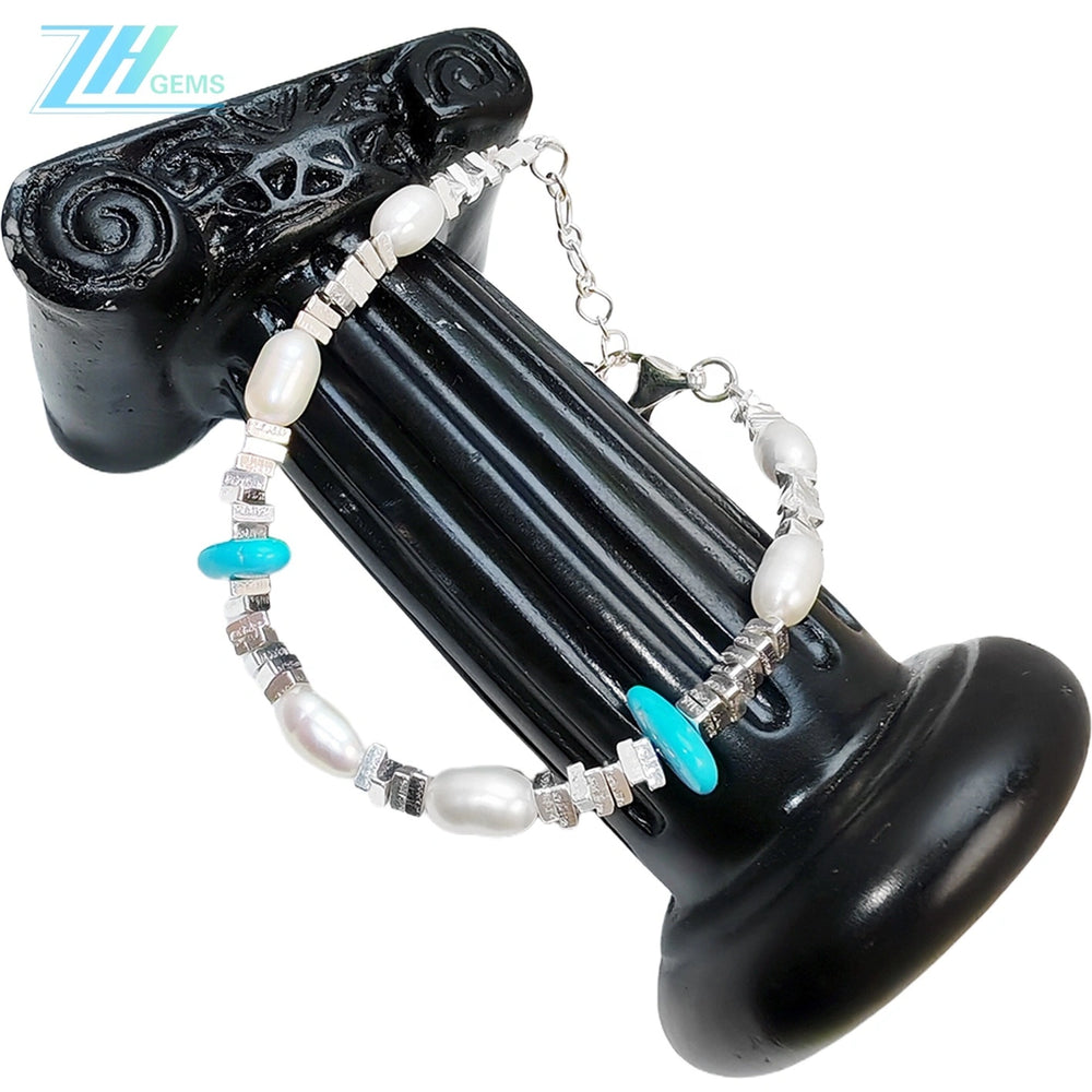 Elevate your jewelry collection with this exquisite handcrafted bracelet, where lustrous natural pearls meet vibrant turquoise stones in perfect harmony. Each piece features genuine S925 sterling silver components, meticulously assembled by skilled artisans to ensure lasting quality and refined elegance. The delicate design showcases the natural beauty of premium materials, creating a sophisticated accessory suitable for both everyday wear and special occasions. This timeless piece combines traditional craftsmanship with contemporary aesthetics, making it an ideal choice for those who appreciate authentic, high-quality jewelry with genuine gemstones.