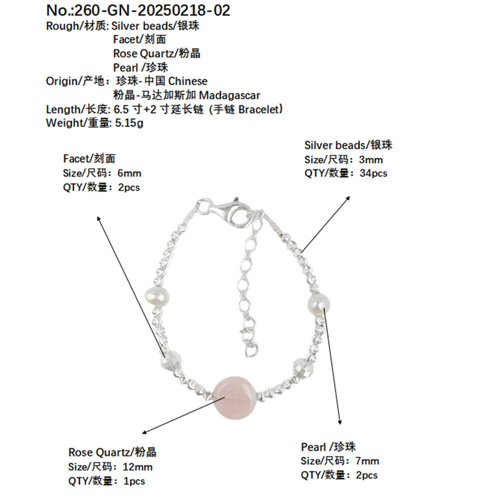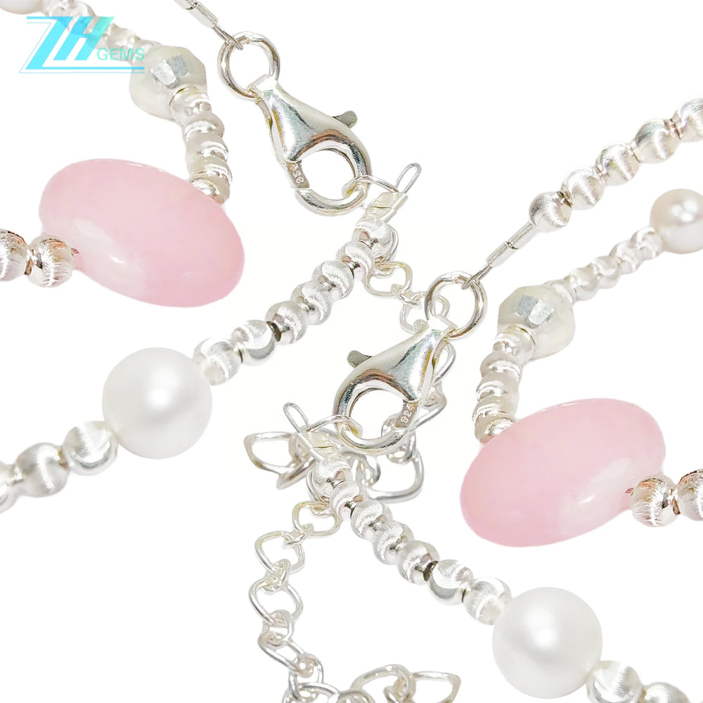 High Quality Natural Rose Quartz Natural Freshwater PearlS925 Silver Pink White Classic Color Bracelet The best for your girlfriend