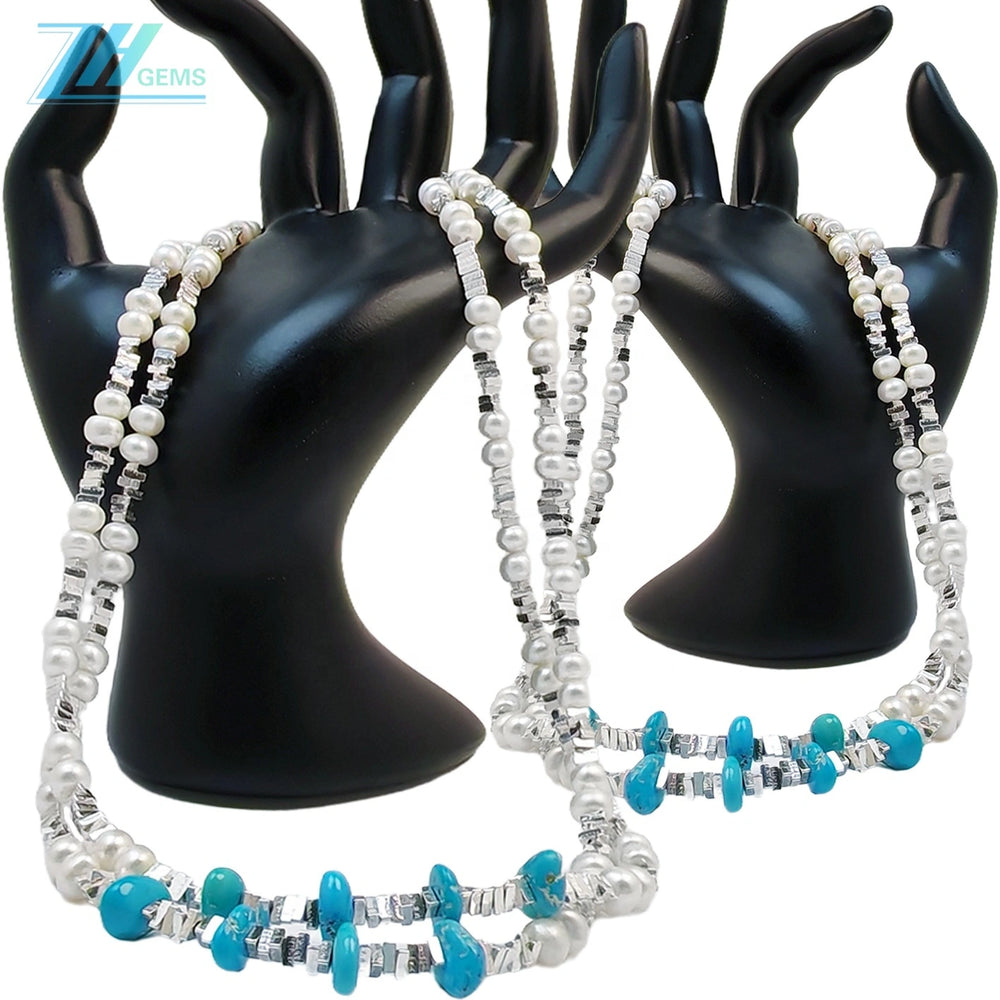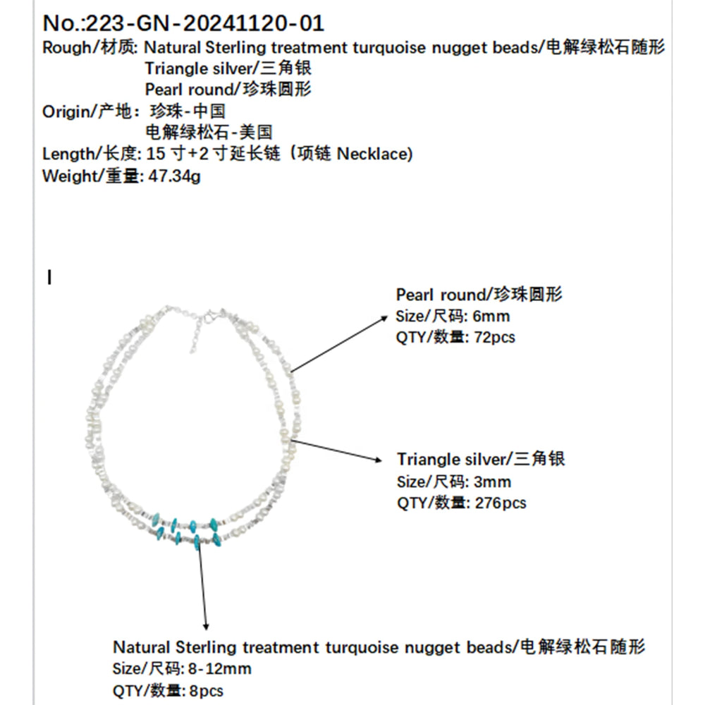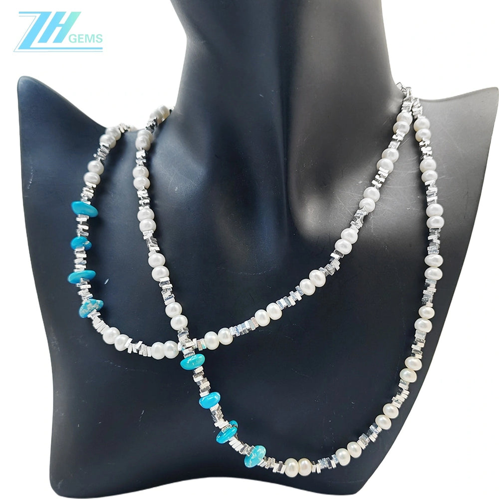Elevate your jewelry collection with this sophisticated pearl necklace, expertly crafted from sterling silver (S925) and complemented by stunning turquoise accents. The delicate design strikes a perfect balance between timeless elegance and contemporary aesthetics, making it versatile enough for everyday wear or special occasions. Each piece showcases meticulous craftsmanship, with the natural beauty of pearls enhanced by the vibrant turquoise gemstone. The custom design capability allows you to personalize this modern statement piece to reflect your individual style. An investment in quality jewelry that transcends trends.
