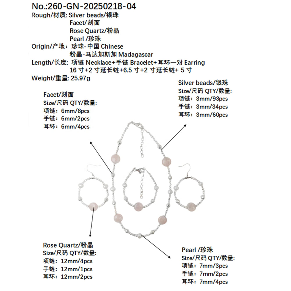 Jewelry Natural Rose Quartz Natural Pearls Sets Three-Piece Sets Earrings Necklaces Bracelets Original Jewelry Designs Great Gifts