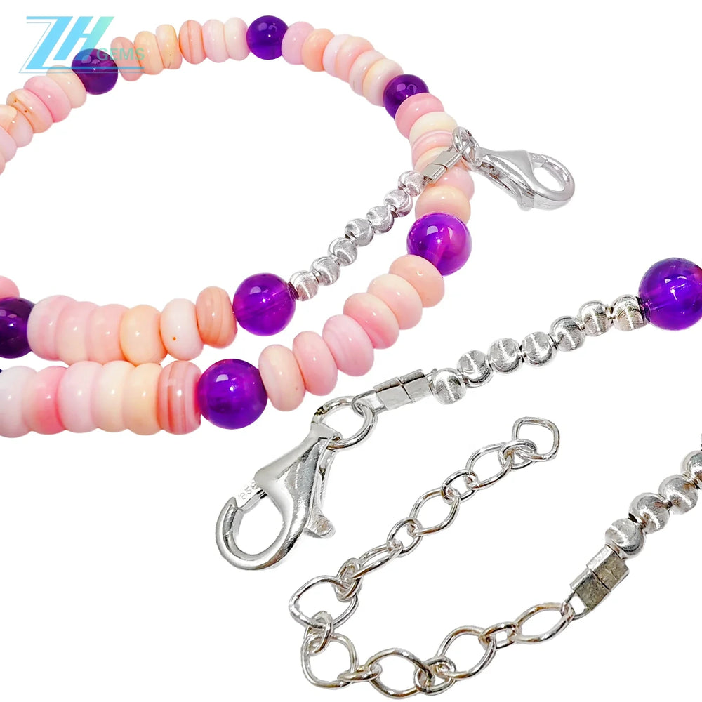 Natural Amethyst Beads And Natural Pink Pink Opal Roundel Necklace Women's Jewelry Boutique Handmade