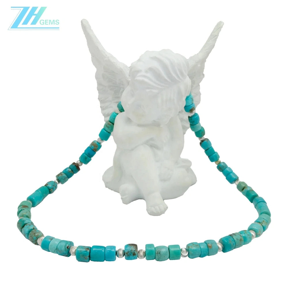 Crafted with genuine filled turquoise drum beads and sterling silver (S925), this necklace exemplifies refined elegance. The natural stone's distinctive blue-green hues create a striking focal point, while the polished silver setting enhances its timeless appeal. Each bead showcases the organic character of turquoise, making this piece both a versatile everyday accessory and a sophisticated statement for special occasions. Perfect for those who appreciate authentic gemstone jewelry with enduring style.