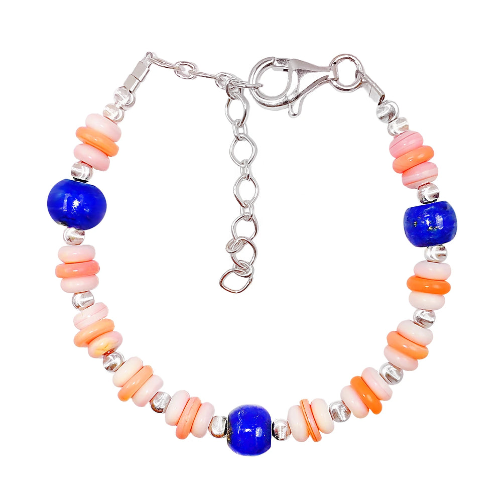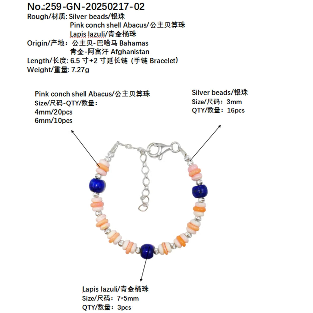 Natural High Quality Lapis Lazuli and pink opal Jewelry Bracelet 6.5 Inch S925 Silver Spring New Original Handmade Jewelry Bracelet