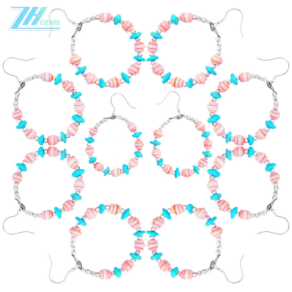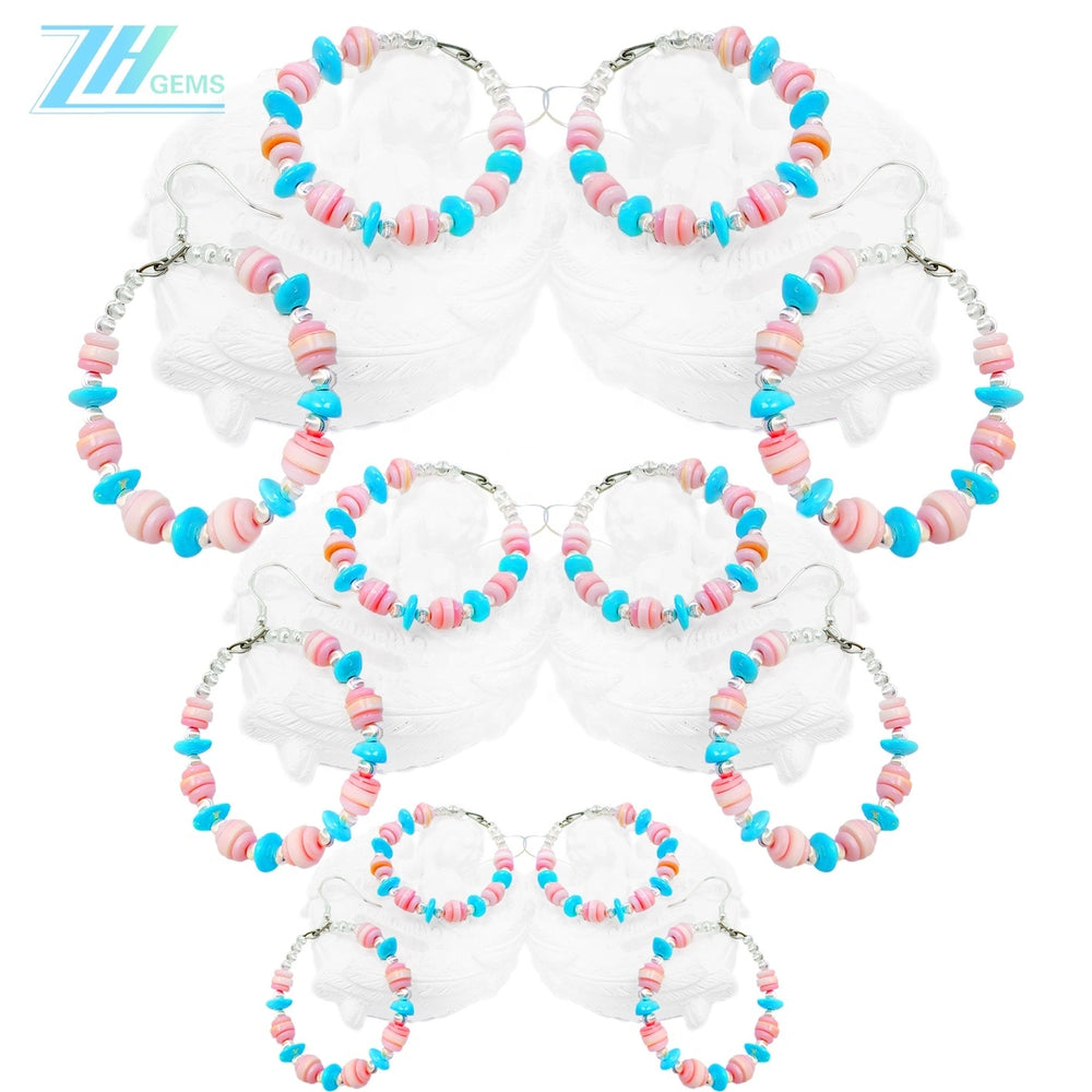 These handcrafted sterling silver earrings showcase natural turquoise paired with delicate pink opal accents. Each piece features authentic gemstones with subtle treatment to enhance their natural beauty, creating a sophisticated color palette of cool turquoise and warm rose tones. The artisanal design celebrates the unique character of each stone, making these earrings a distinctive addition to any collection. Perfect for those who appreciate genuine materials and expert craftsmanship.