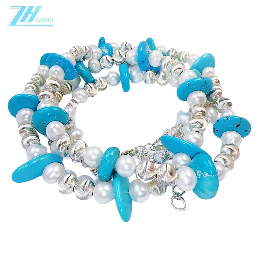 Elevate your jewelry collection with this sophisticated double necklace, expertly crafted to showcase the timeless elegance of natural pearls and authentic turquoise. Each strand features delicate gemstones meticulously selected for their quality and luminosity, creating a layered look that transitions seamlessly from day to evening wear. The premium construction ensures durability while maintaining the refined aesthetic that discerning jewelry enthusiasts appreciate. Perfect as a winter gift or personal indulgence, this piece combines traditional gemstone beauty with contemporary design sensibility.
