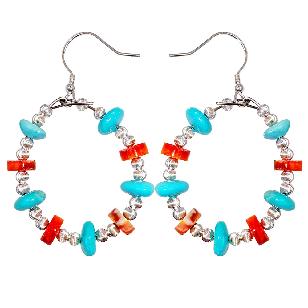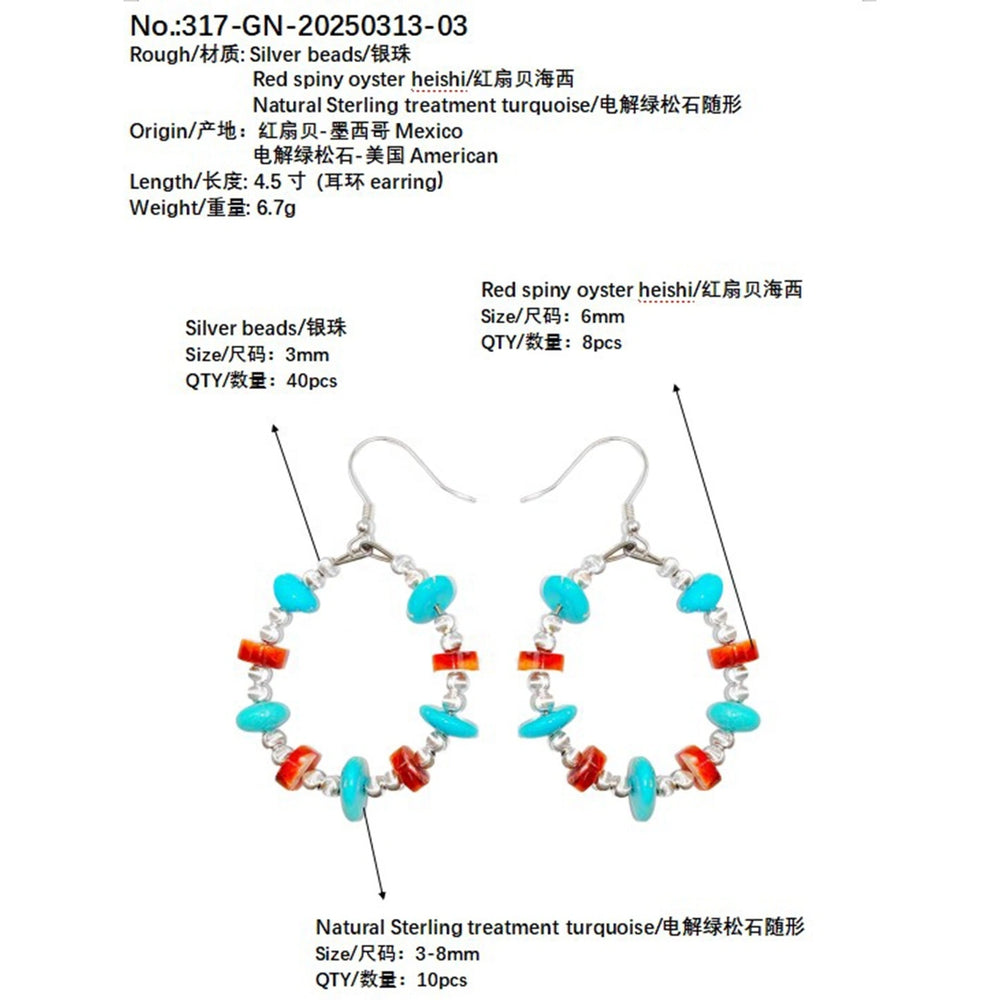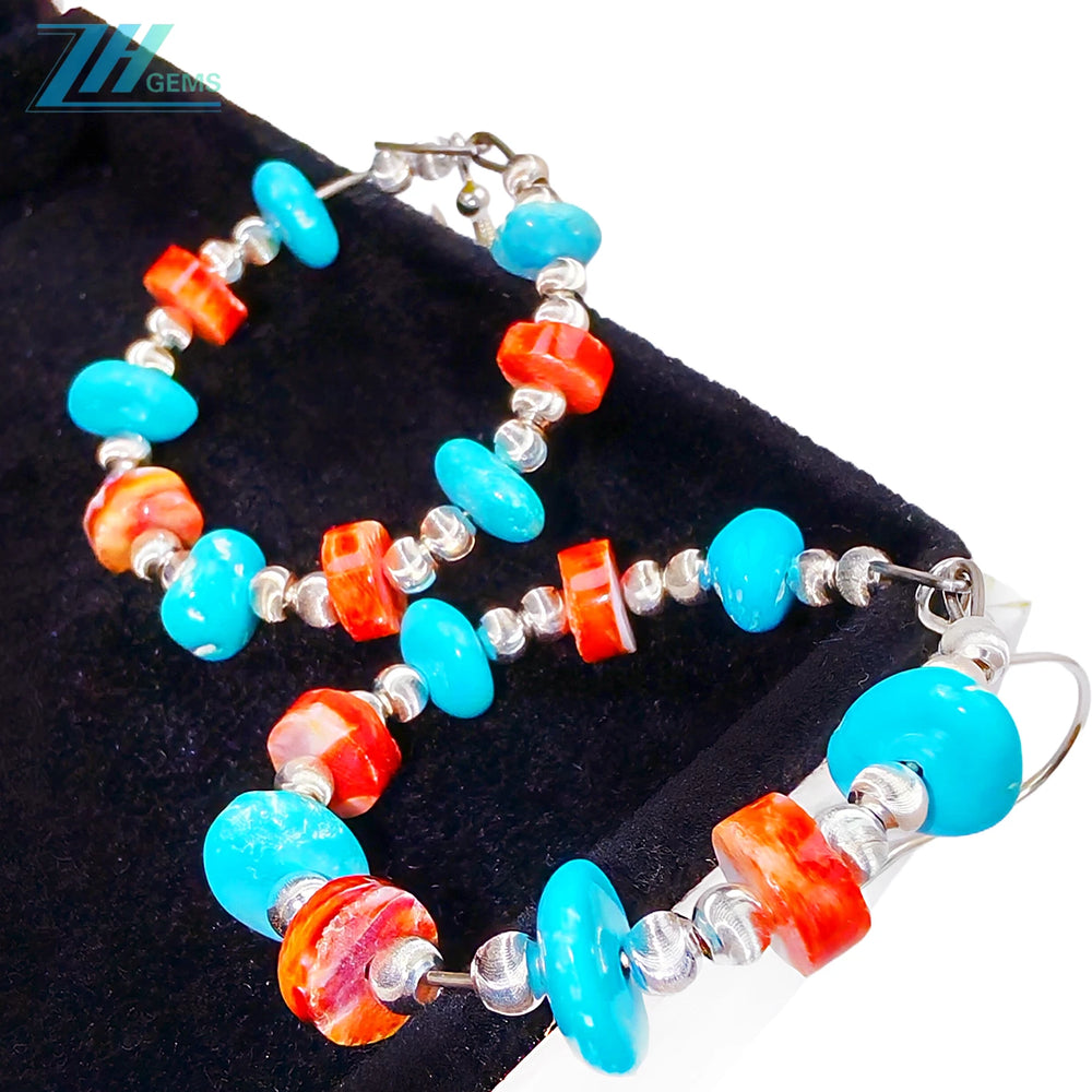 Natural red spiny oyster amber and natural turquoise form gemstone earrings They sway vividly adding a gorgeous and fantastic color to your ears