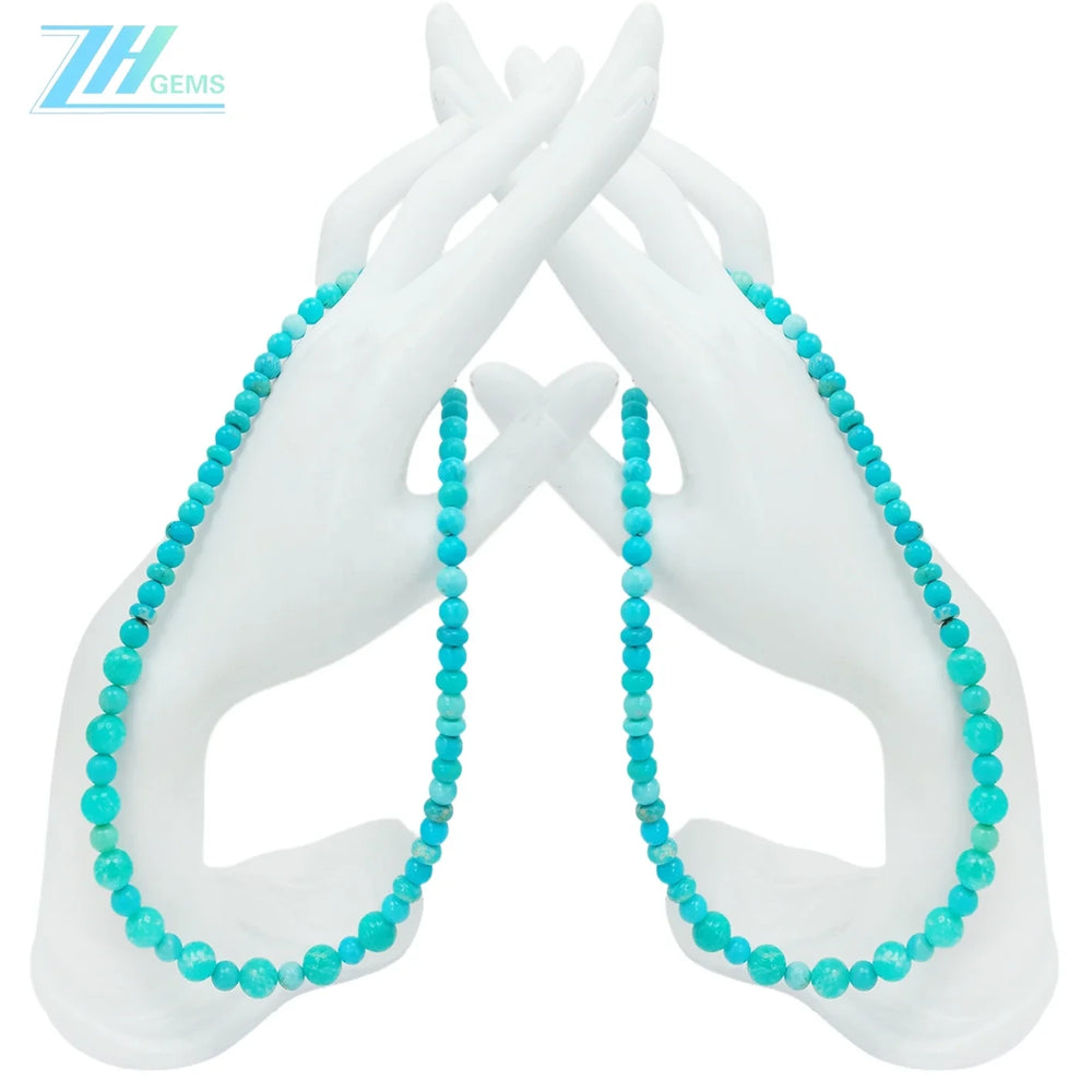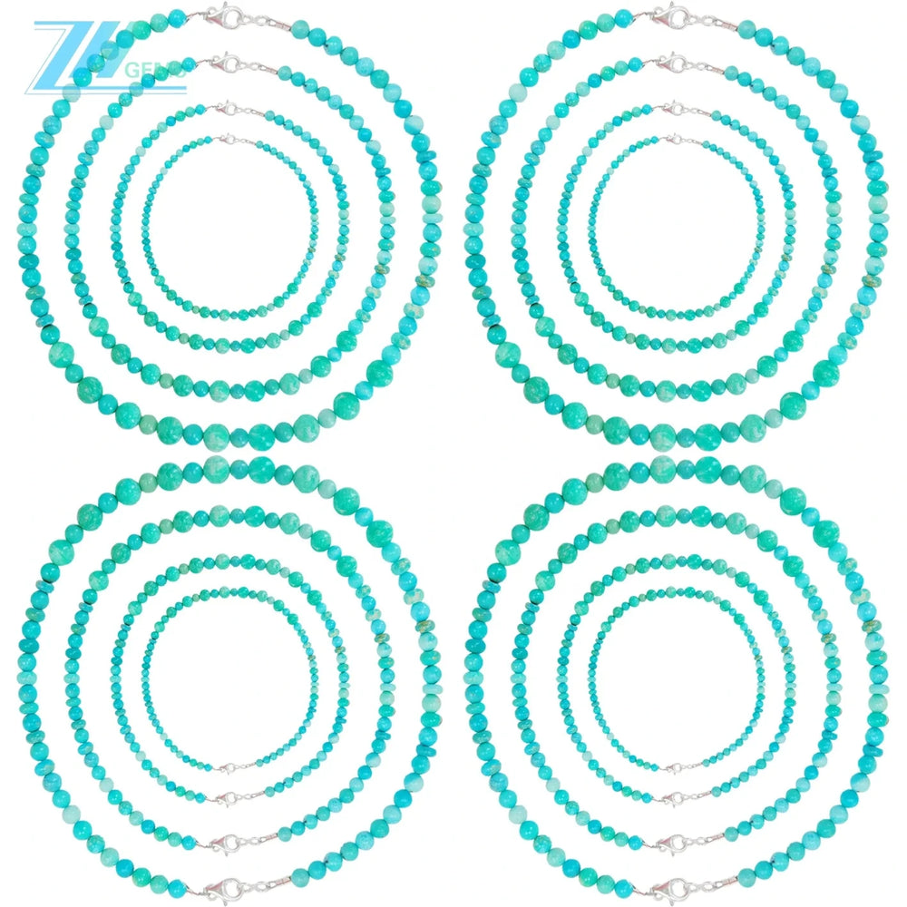 This exquisite natural turquoise necklace features carefully selected round beads in complementary 8mm and 6mm sizes, creating a refined aesthetic. Measuring 16 inches with a substantial 21.6-gram weight, it offers both presence and wearability. Each bead showcases the authentic variations and rich coloring characteristic of genuine turquoise, making this piece a distinctive addition to any jewelry collection. The delicate construction ensures comfortable everyday wear while maintaining an elegant appearance. An ideal gift for those who appreciate fine gemstone jewelry and timeless design.