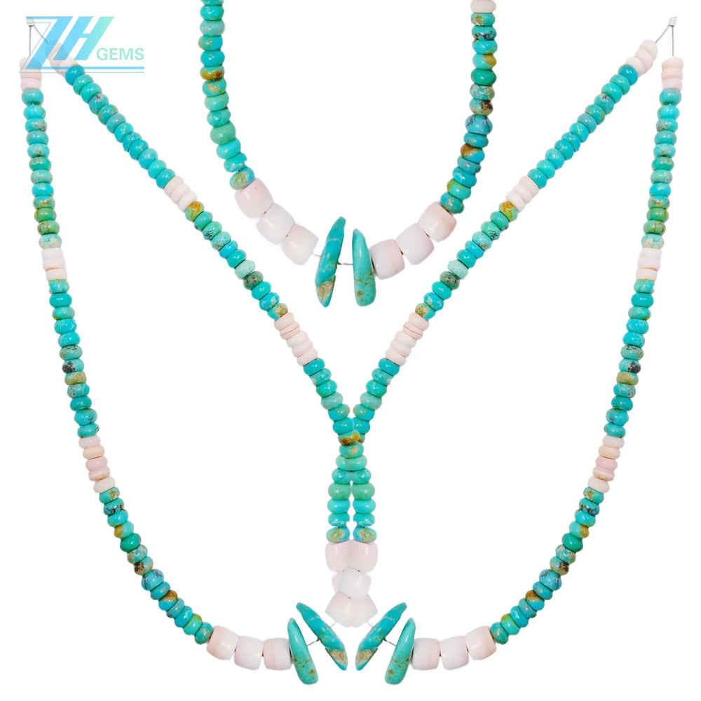 Handcrafted with natural turquoise and pink opal gemstone beads, this striking necklace combines soothing green and pink hues in perfectly rounded forms. Each bead showcases the unique patterns and variations inherent to authentic stones, creating a one-of-a-kind piece. Turquoise has long been valued for its grounding properties, while pink opal is believed to promote emotional healing and compassion. This versatile necklace works beautifully as a meaningful gift for the woman in your life, whether for a holiday celebration or as a thoughtful gesture of support. Perfect for those seeking both aesthetic beauty and the subtle energy of natural gemstones.