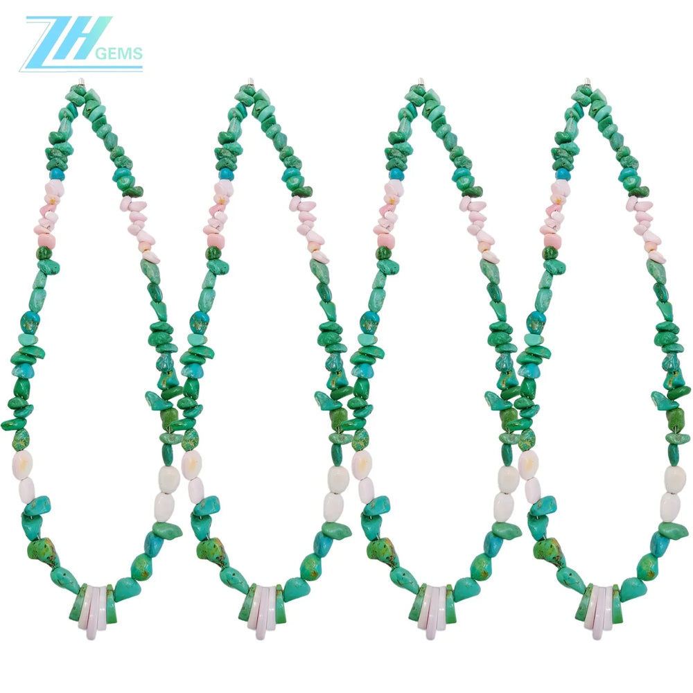 Natural turquoise and pink opal beads combine earthy elegance in this 16-inch strand, perfect for creating distinctive handmade jewelry. The free-form shapes showcase the authentic character of these gemstones, with rich green turquoise tones complemented by soft pink opal hues. Each bead is naturally unique, making every piece you craft truly one-of-a-kind. Ideal for beaders and jewelry designers seeking quality materials with genuine mineral beauty. An excellent choice for gifts or personal creative projects.