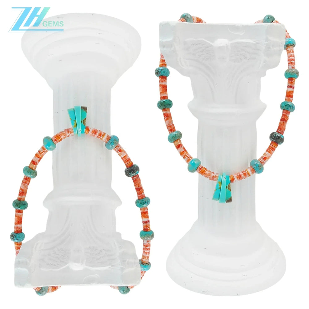 Discover the timeless allure of natural turquoise and spiny oyster in this exquisite multi-stone collection. Each piece showcases authentic gemstones, perfect for jewelry makers seeking premium materials or fashion enthusiasts craving distinctive style. The striking contrast between turquoise's serene blue-green hues and spiny oyster's vibrant, iridescent patterns creates captivating designs. Ideal for crafting custom pieces or gifting to those who appreciate genuine, artisanal jewelry. These natural stones bring elegance and character to any collection, combining traditional beauty with contemporary appeal.