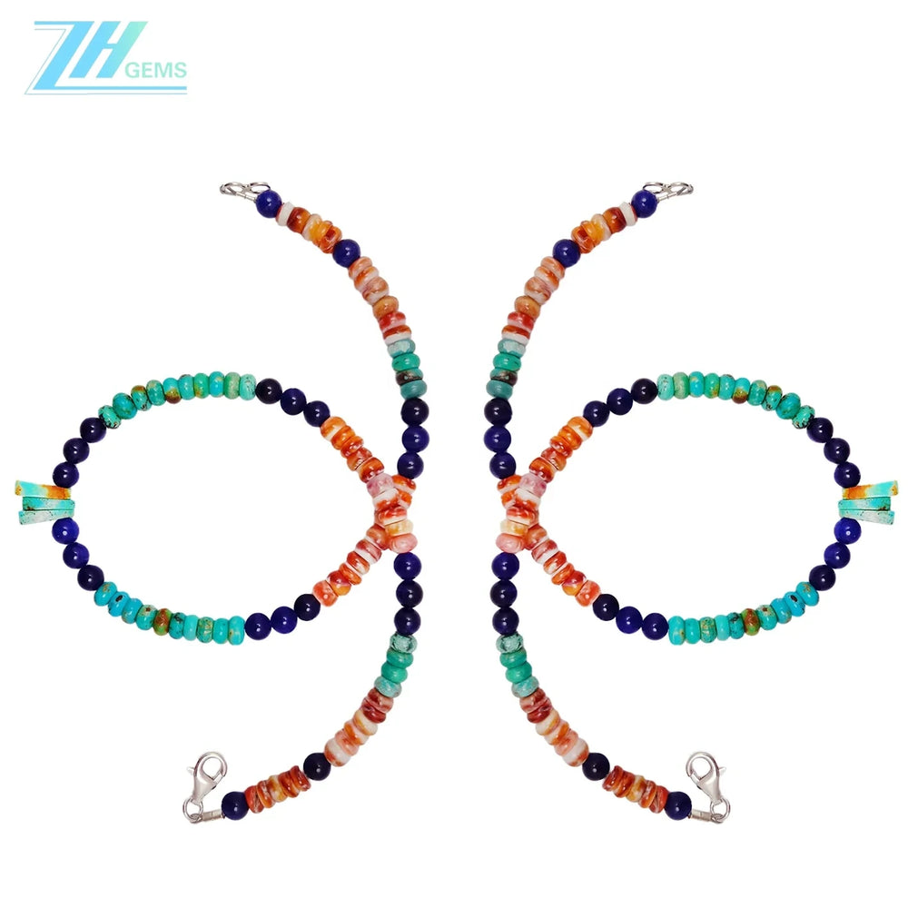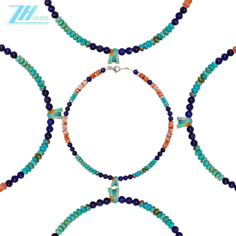 Embrace the harmonizing energy of this handcrafted bracelet, featuring authentic turquoise drops paired with deep blue sodalite and vibrant spiny oyster shell beads. Each gemstone is carefully selected and hand-strung to create a unique piece that celebrates natural beauty and mineral authenticity. Turquoise is traditionally valued for promoting calm and protection, while sodalite encourages inner peace and clarity. The distinctive spiny oyster adds warmth and grounding energy to the composition. Perfect for those who appreciate genuine gemstone jewelry with meaningful intention, this bracelet combines artisanal craftsmanship with the timeless appeal of natural materials.