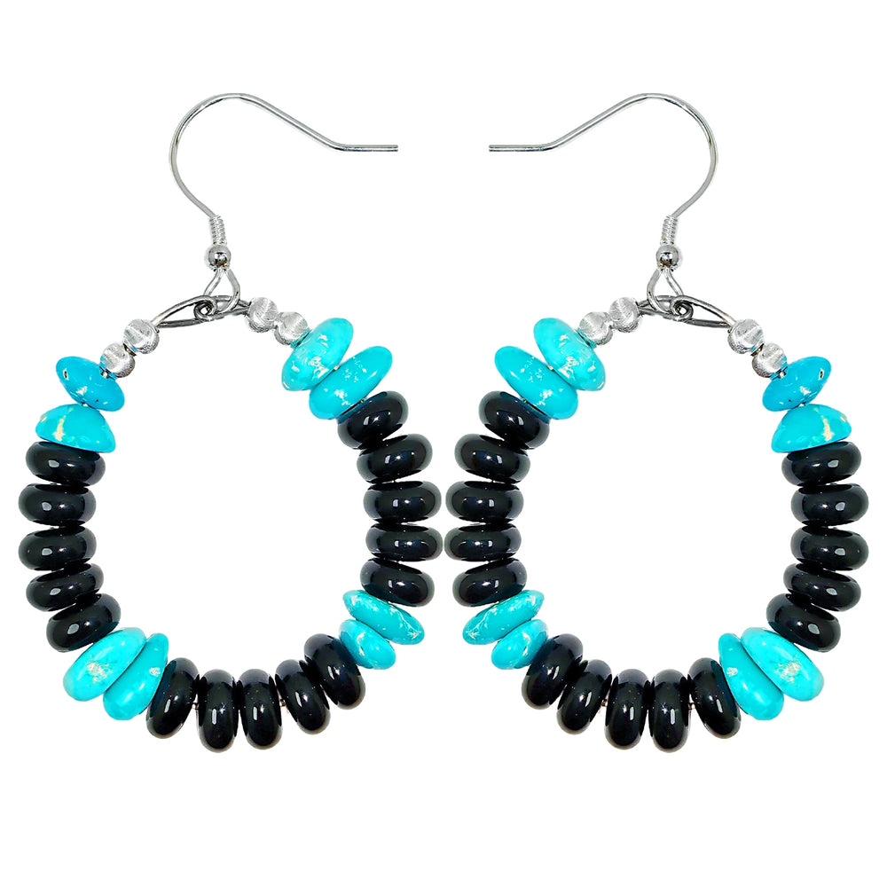 Natural Obsidian and natural Sterling treatment Turquoise form gemstone earrings They are small and delicate adding a mysterious and unique color to the ears