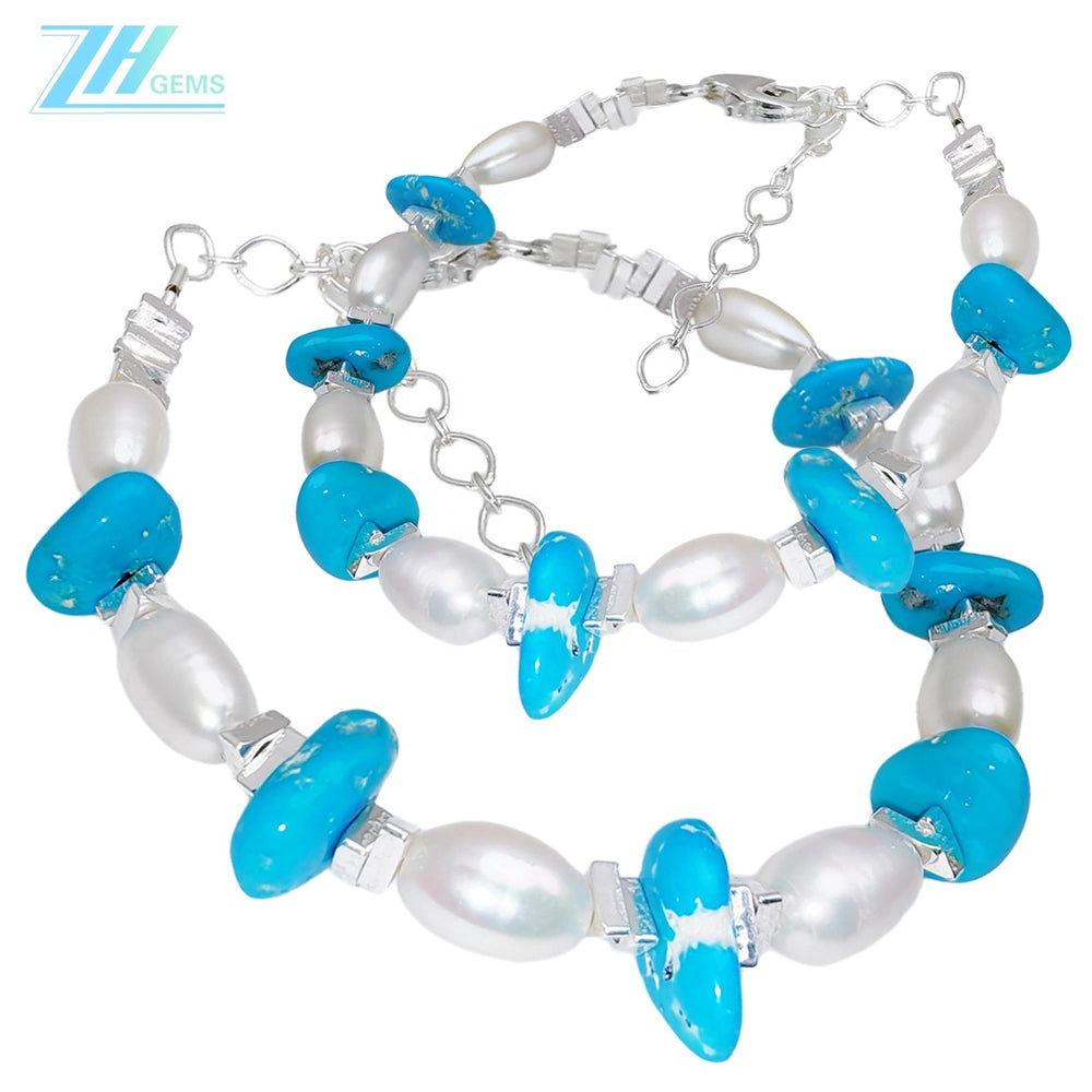 Elevate your jewelry collection with this exquisite handmade bracelet, where natural turquoise and lustrous pearls unite in timeless elegance. Crafted from sterling silver (S925), each piece showcases authentic gemstones selected for their unique character and beauty. The combination of calming turquoise and iridescent pearls creates a sophisticated aesthetic perfect for everyday wear or special occasions. This artisan-made design embodies goddess-inspired craftsmanship, making it an ideal holiday gift for the discerning woman who appreciates quality and natural beauty. A versatile accessory that transcends trends and celebrates the inherent splendor of nature's finest materials.