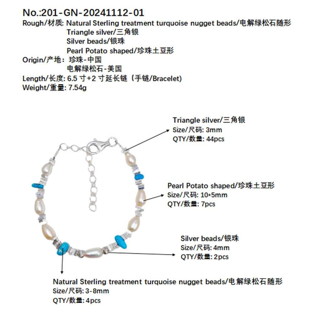 Elevate your winter collection with this exquisite natural turquoise pearl bracelet, crafted from authentic sterling silver (S925) for lasting durability and timeless elegance. Each piece features genuine turquoise and pearl elements, carefully selected for their natural beauty and quality. The sophisticated design makes it an ideal gift for someone special, offering both aesthetic appeal and the prestige of fine jewelry. Perfect for layering or wearing solo, this bracelet combines traditional craftsmanship with contemporary style, ensuring it complements any wardrobe while maintaining its lustrous finish for years to come.
