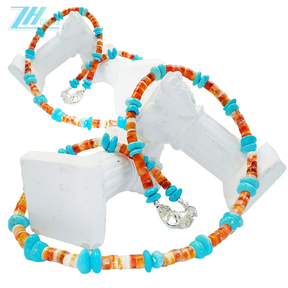 Elevate your collection with this striking Orange Spiny Oyster turquoise necklace, showcasing authentic natural turquoise paired with refined sterling silver craftsmanship. The vibrant orange hues characteristic of spiny oyster turquoise create a distinctive aesthetic that complements both casual and formal wear. Suspended from delicate S925 silver components, this piece combines geological beauty with jewelry-grade construction. Perfect for those who appreciate genuine gemstones and timeless design, this necklace serves as a versatile statement piece that celebrates the natural variations and rich coloring of premium turquoise.