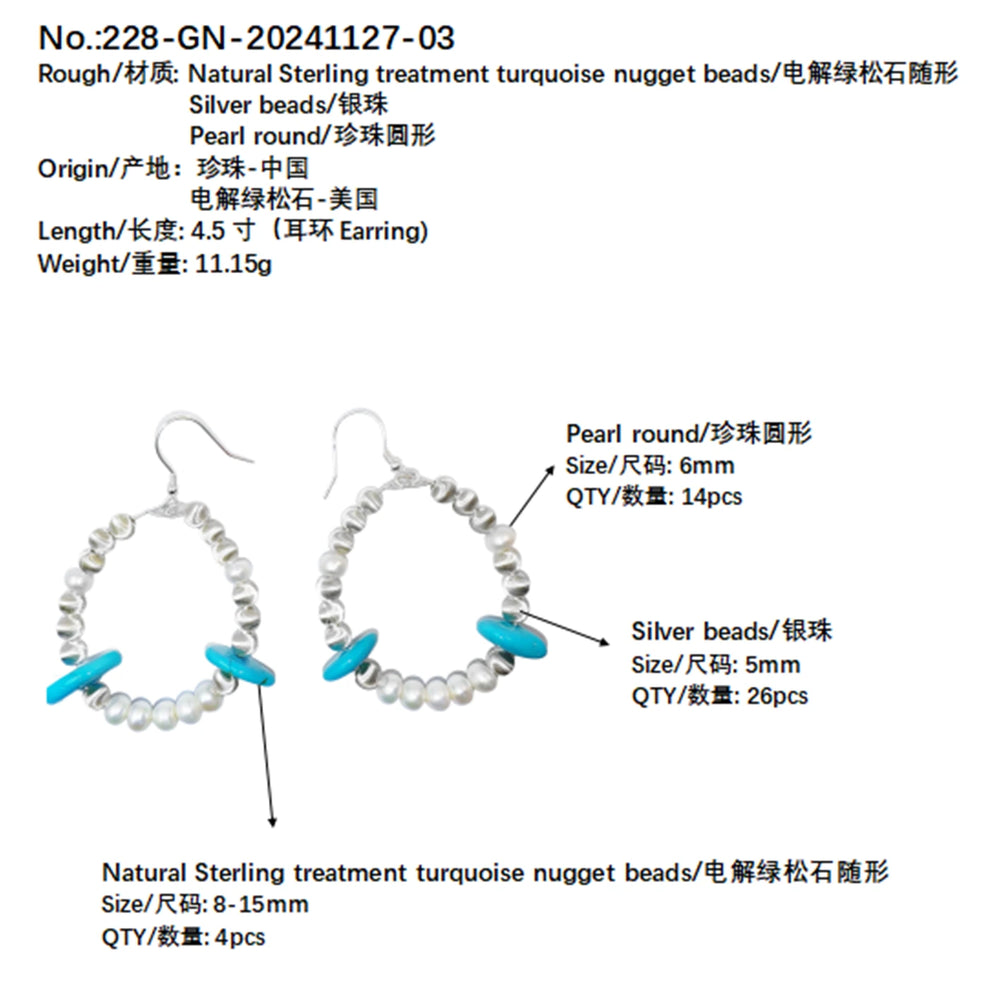 Elevate your jewelry collection with these exquisite pearl earrings crafted from sterling silver (S925). Featuring genuine natural turquoise and high-quality pearls, these earrings combine timeless elegance with contemporary appeal. The expert craftsmanship delivers a luxurious aesthetic perfect for both everyday wear and special occasions. Their sophisticated design has earned them a reputation as a bestseller among discerning jewelry enthusiasts. Experience the perfect balance of authenticity and style with these coveted earrings.