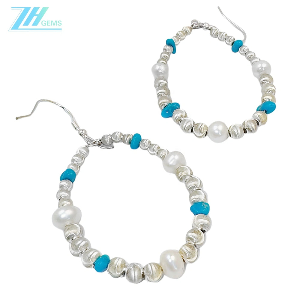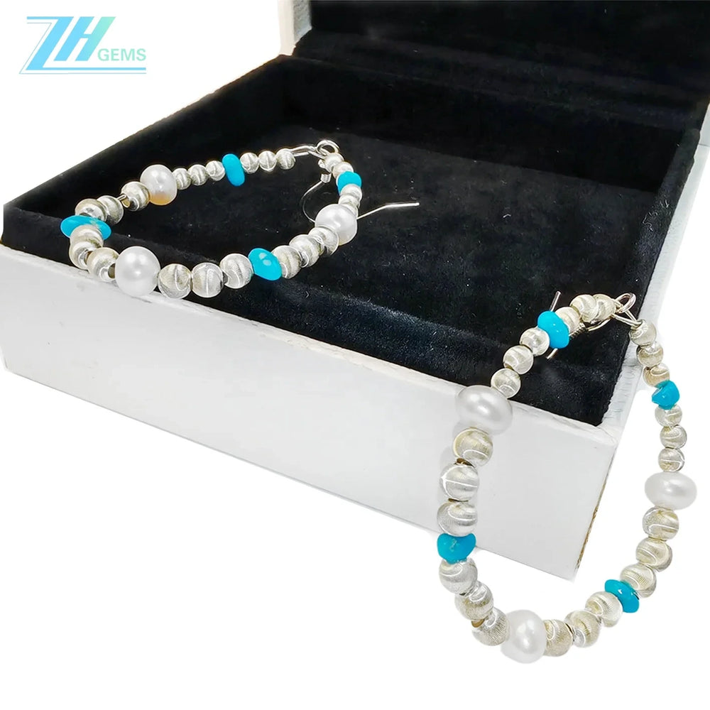 Elevate your jewelry collection with these exquisite pearl and turquoise earrings, meticulously crafted from sterling silver (S925). Each pair combines the timeless elegance of lustrous pearls with the distinctive beauty of natural turquoise stones, creating a sophisticated accessory that transitions seamlessly from everyday wear to special occasions. The expert craftsmanship ensures durability and lasting brilliance, while the versatile design complements any style. Perfect as a gift or personal indulgence, these designer-quality earrings showcase the finest in contemporary jewelry artistry.