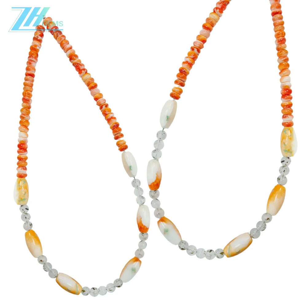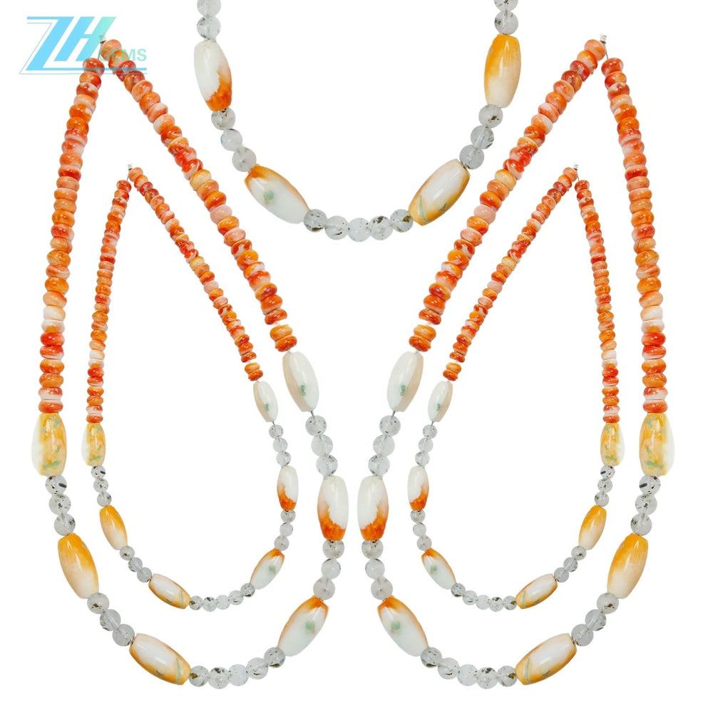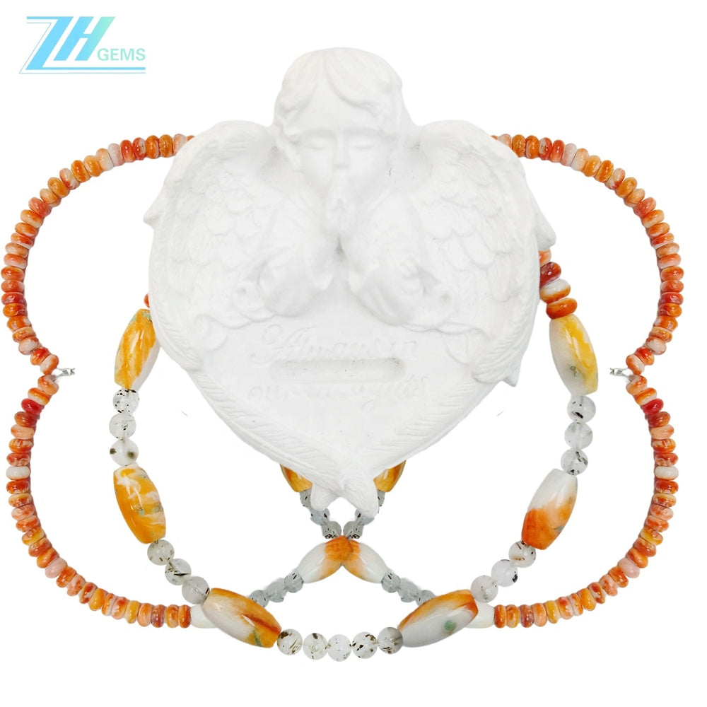 Pink Opal Spiny Oyster And Black Rutilated Quartz 16inch 25.8gram Elegant Summer Choice Present For Lover Mom Family
