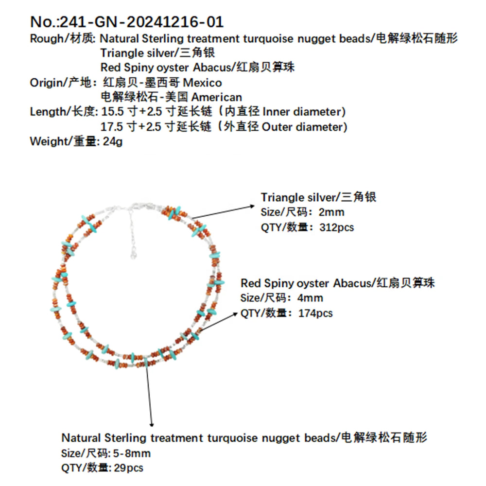 Handcrafted with meticulous attention to detail, this striking necklace combines genuine turquoise and vibrant red spiny oyster shell in a geometric triangle pendant. Suspended from an authentic sterling silver (S925) chain, each piece showcases the natural variations and unique character of these precious materials. The thoughtful design balances bold color contrast with refined craftsmanship, making it an exceptional choice for those who appreciate artisanal jewelry. Perfect as a meaningful gift or a distinguished addition to your personal collection, this handmade piece reflects both natural beauty and skilled artistry.