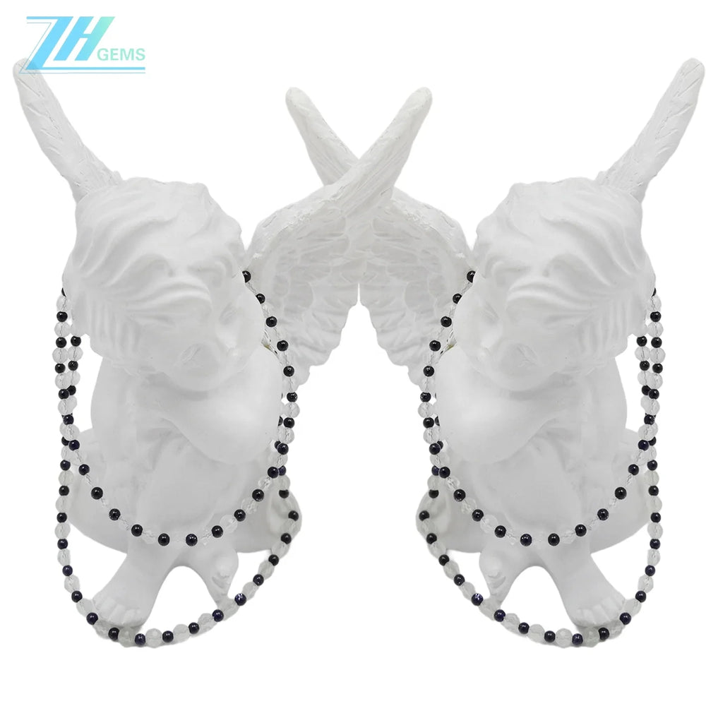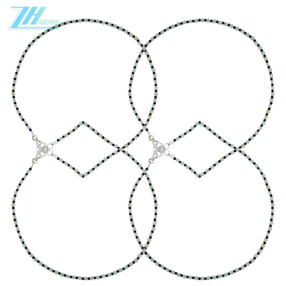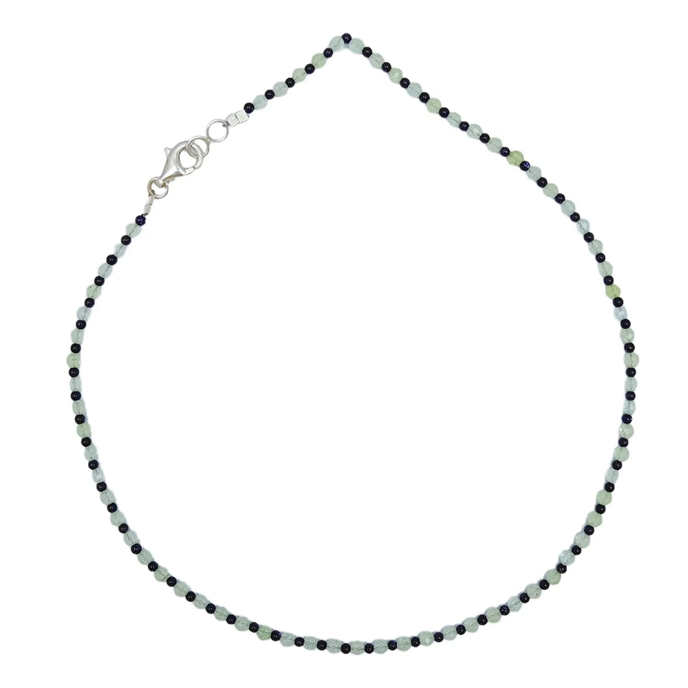 Prehnite Agate Black Beaded Necklace Transparency Gemstone 16inch 6g 925 Sterling Silver Chip Statement Necklace Gift For Her