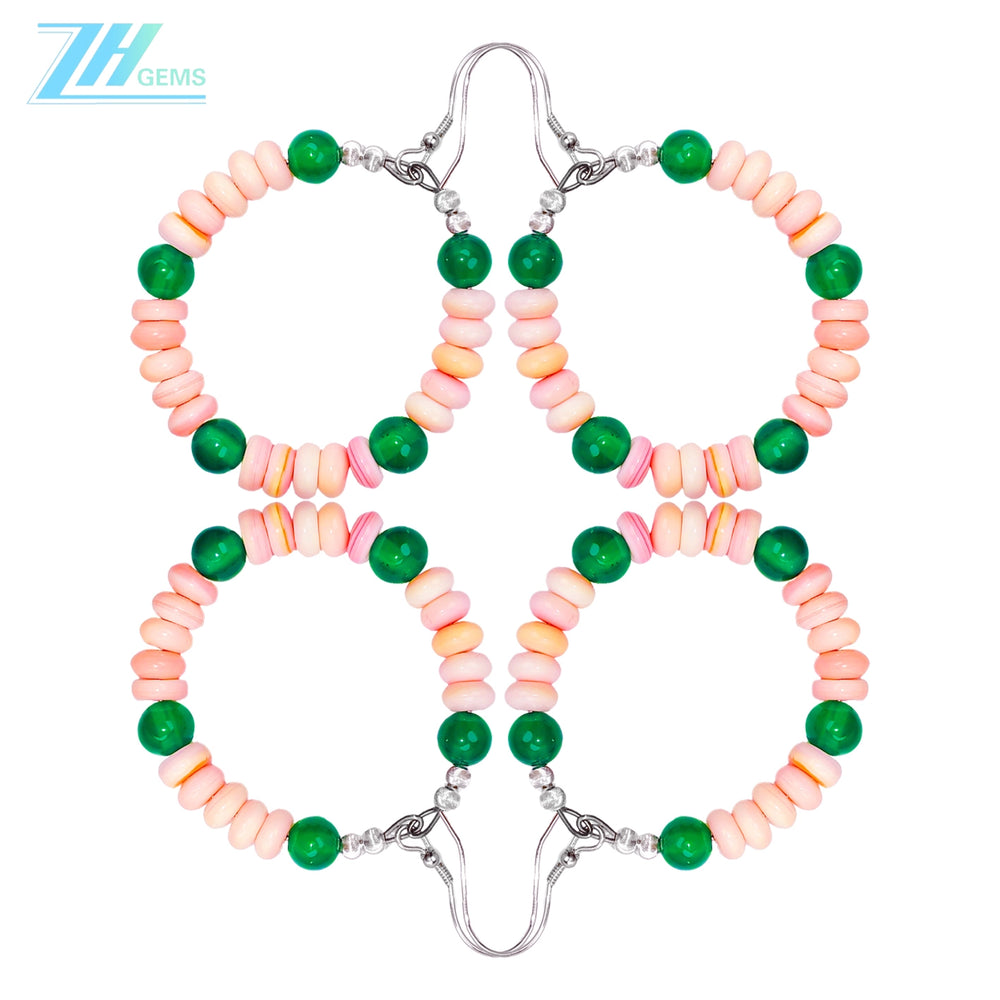 These exquisite earrings feature genuine pink opal paired with vibrant chrysoprase, expertly set in 925 sterling silver. Designed as stud drops, they offer a refined balance of elegance and subtle movement, making them ideal for women who appreciate distinctive gemstone jewelry. The combination of pink opal’s soothing hue and chrysoprase’s rich green creates a harmonious contrast that enhances any outfit. Perfect as a thoughtful gift, these earrings showcase expert craftsmanship and timeless beauty.
