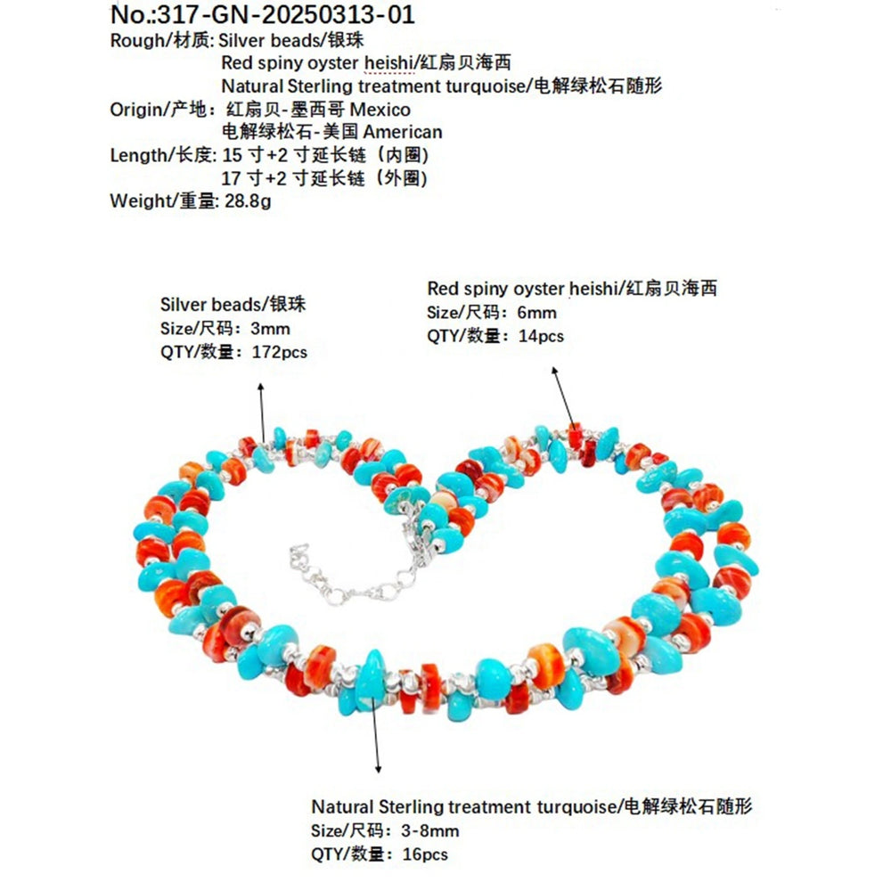 S925 silver elaborately creates a double layer structure stringing bright red spiny oyster as if winding a passionate ocean story around the neck showing uniqueness