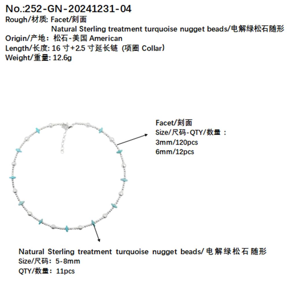 Elevate your jewelry collection with this exquisite silver bead collar, where authentic turquoise stones meet refined sterling silver craftsmanship. Each piece showcases the natural beauty and unique variations of genuine turquoise, prized for centuries across cultures. The thoughtfully designed beaded construction offers versatile styling—perfect for everyday wear or special occasions. This timeless accessory makes an ideal gift for family members, combining cultural significance with contemporary elegance. The harmonious blend of cool silver tones and warm turquoise hues creates a sophisticated look that complements any wardrobe while celebrating the artistry of traditional jewelry-making.