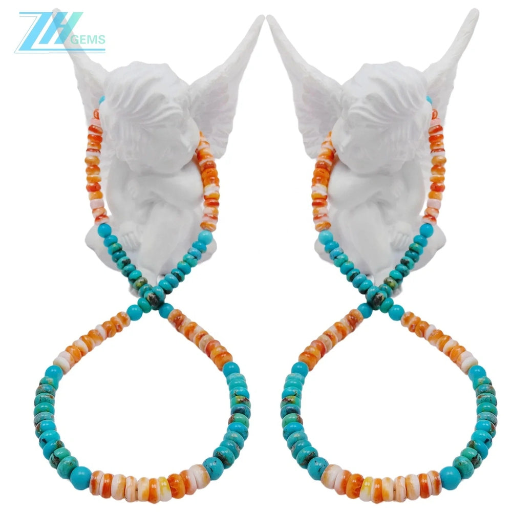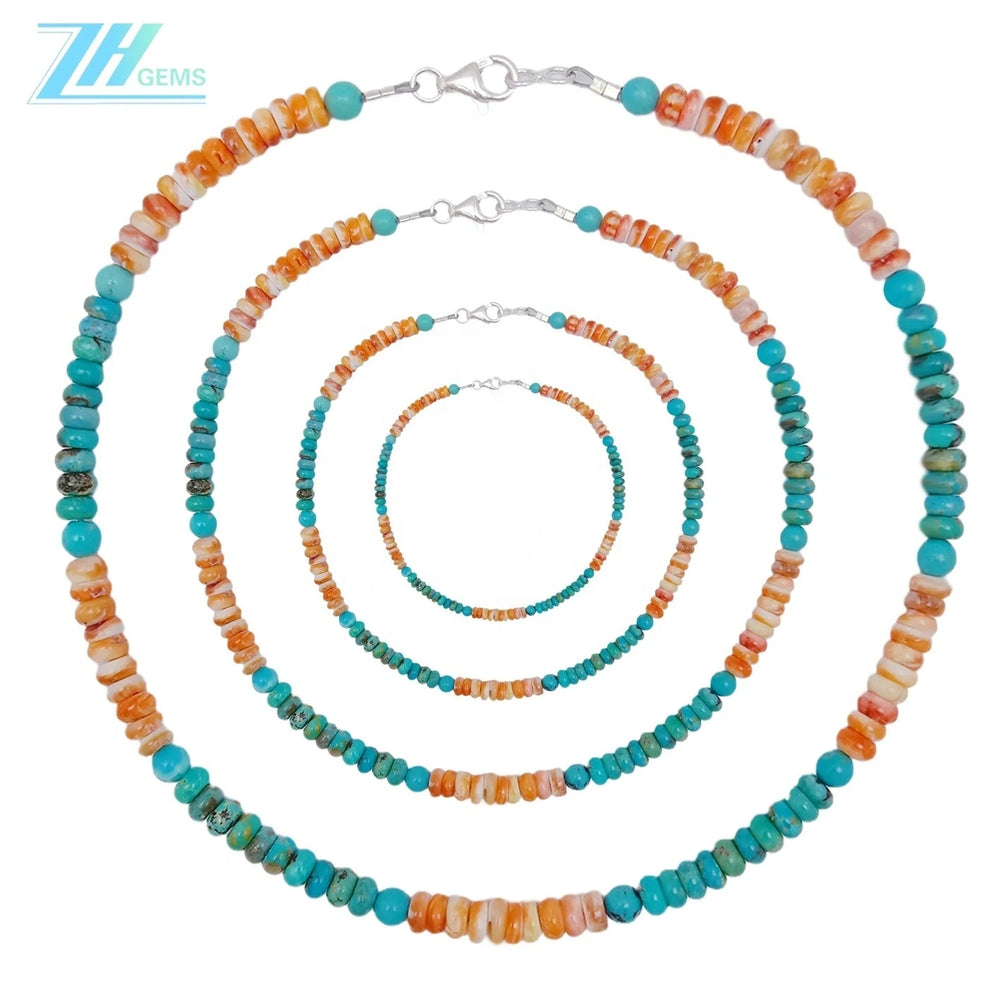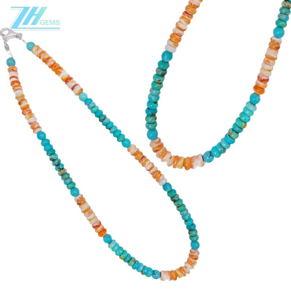 Elevate your jewelry collection with this sophisticated necklace featuring genuine spiny oyster and stabilized turquoise beads. Handcrafted with sterling silver (S925) components, each piece showcases the natural beauty and distinctive patterns of premium turquoise stones. The carefully selected beads are strung to create a balanced, wearable design that complements both casual and formal occasions. Perfect for those who appreciate authentic gemstone jewelry with timeless appeal and refined craftsmanship.