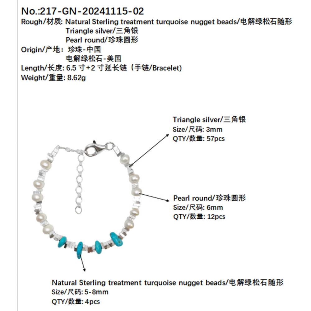 Elevate your jewelry collection with this exquisite turquoise pearl bracelet, meticulously crafted from sterling silver (S925). Each piece features authentic natural pearls paired with vibrant turquoise beads, creating a harmonious blend of timeless elegance and contemporary design. The expert craftsmanship ensures durability and lasting beauty, while the versatile aesthetic complements both casual and formal occasions. Customizable options allow you to personalize this designer accessory to reflect your unique style. A sophisticated choice for those who appreciate quality materials and refined jewelry artistry.