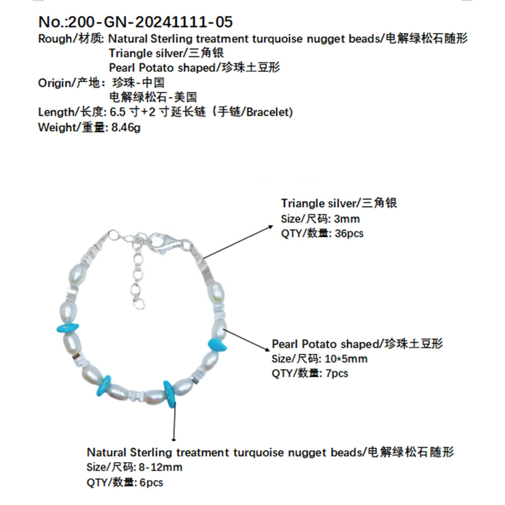 Elevate your jewelry collection with this exquisite turquoise pearl bracelet, crafted from authentic S925 sterling silver. Each piece features lustrous natural pearls paired with carefully selected turquoise beads, creating a harmonious blend of elegance and sophistication. The designer-quality construction ensures durability and timeless appeal, making it an ideal choice for both everyday wear and special occasions. Customizable to suit your personal style, this bracelet serves as a thoughtful holiday gift for the discerning woman who appreciates fine craftsmanship and distinctive design.