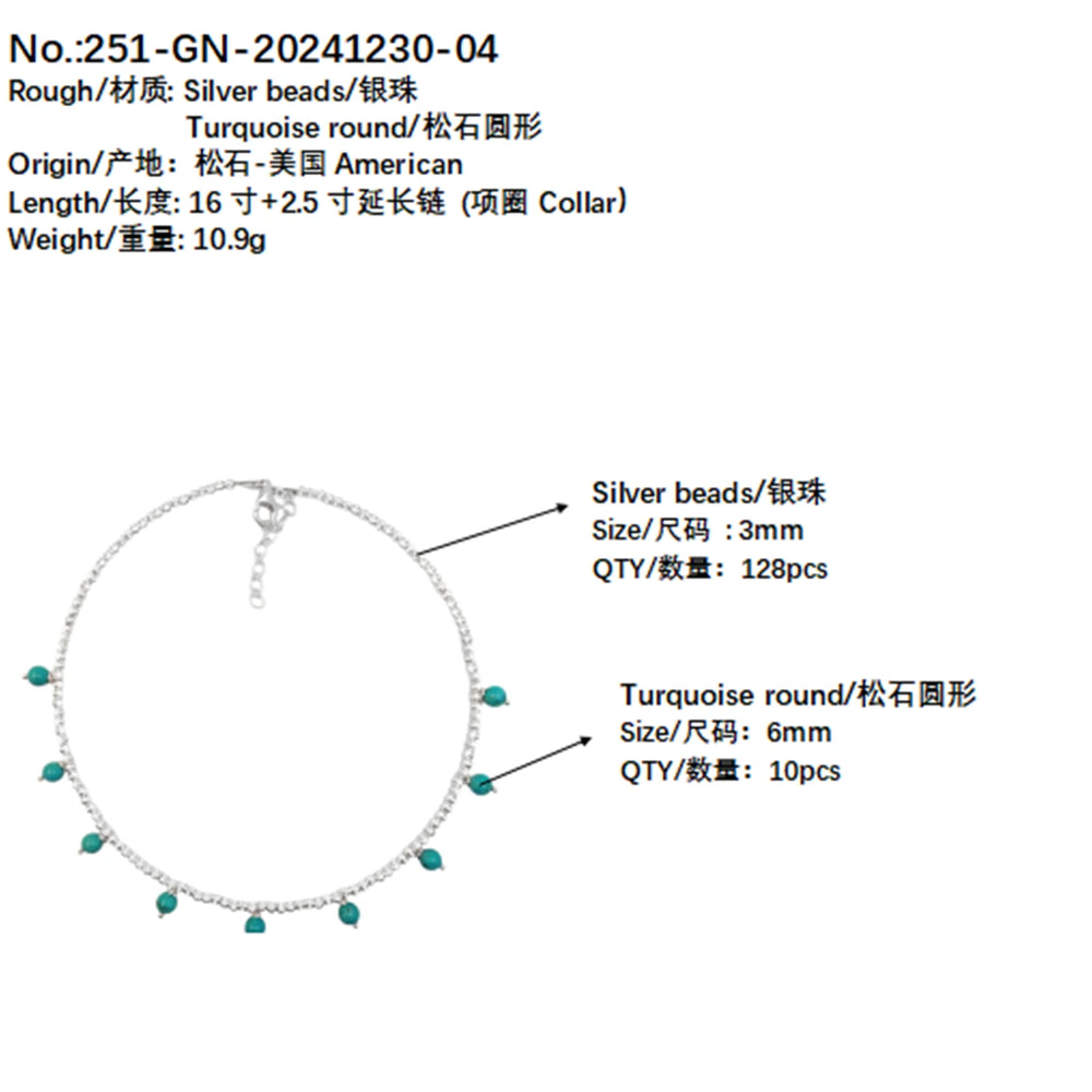 Elevate your winter wardrobe with this exquisite turquoise necklace, crafted from authentic S925 sterling silver and genuine natural turquoise stones. Each piece features carefully selected turquoise accents complemented by polished silver beads, creating a sophisticated balance of color and shine. The sterling silver construction ensures durability and hypoallergenic wear, making it ideal for sensitive skin. This timeless design transitions seamlessly from casual to formal occasions, offering versatile styling for any season. A perfect gift choice that combines natural beauty with expert craftsmanship.